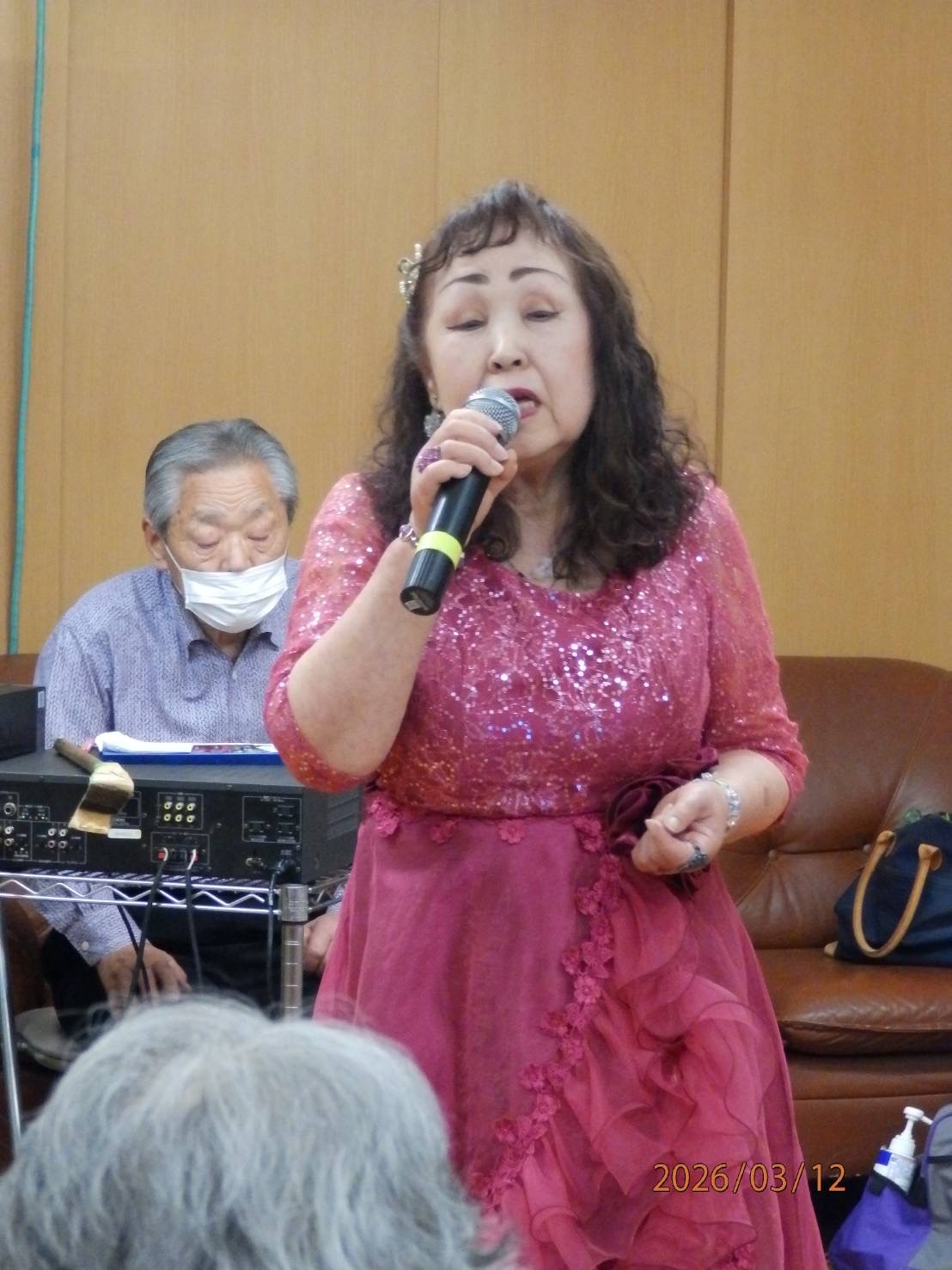 今回は、入所している利用者様の娘さんと「旅の夜風」を元気良く歌っていただきました。