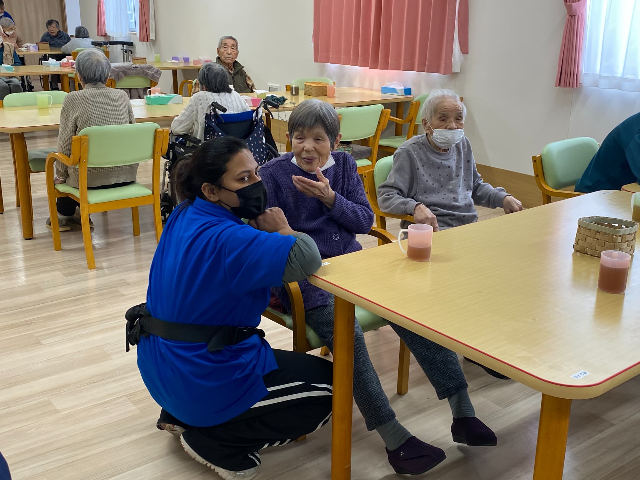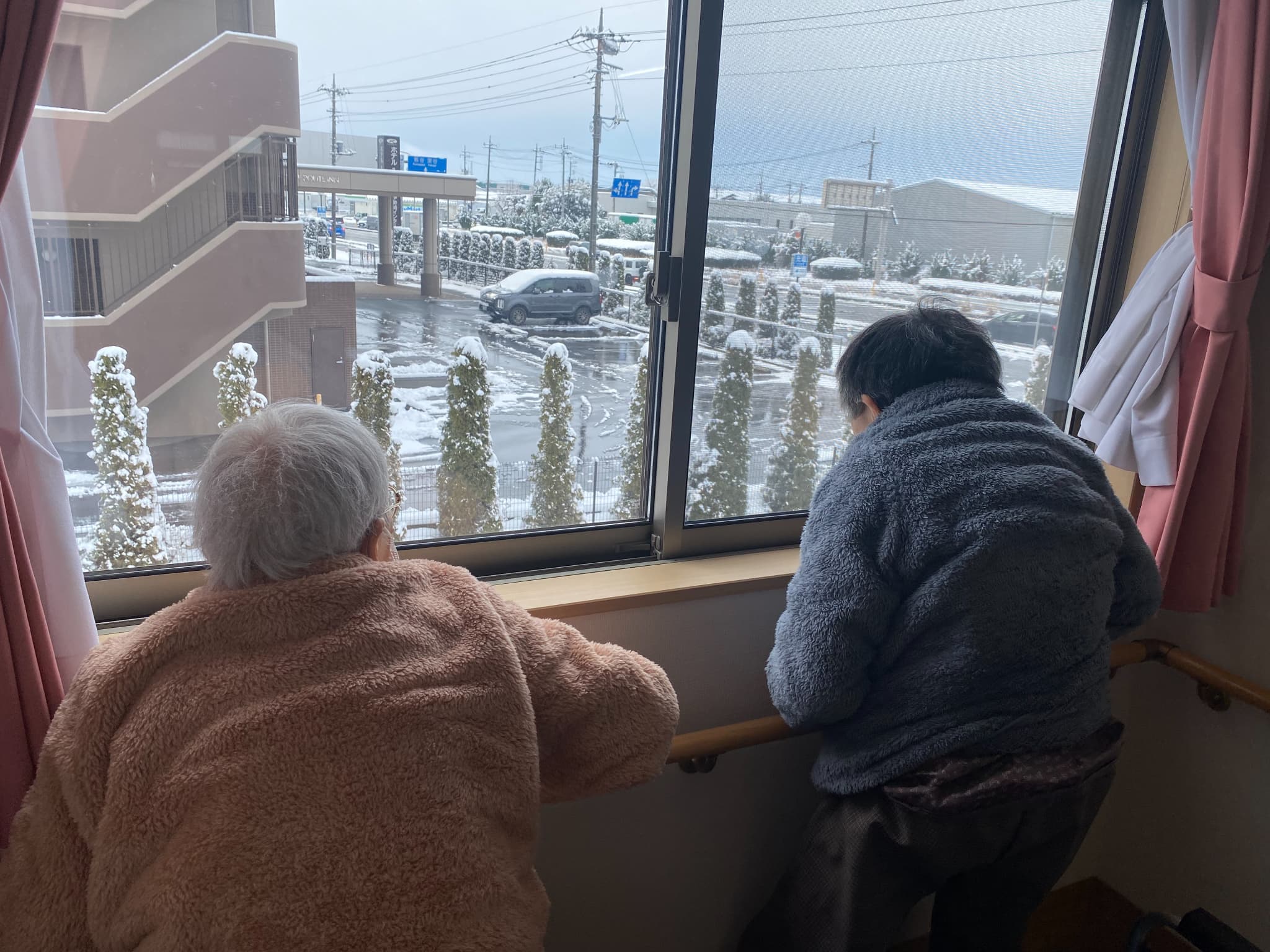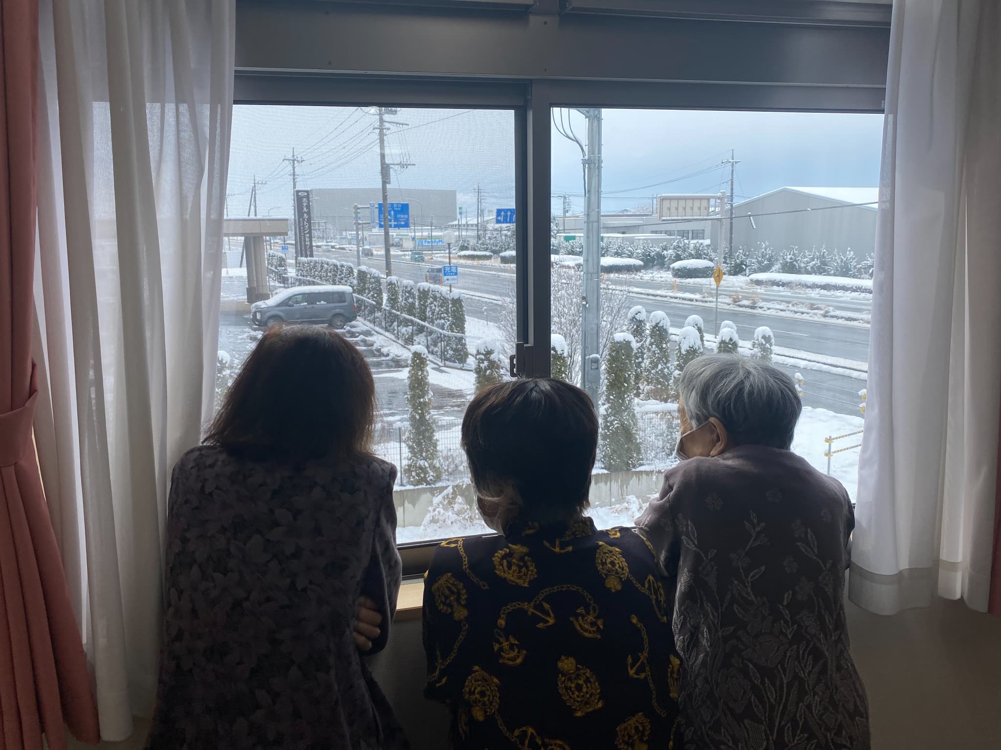 日曜日、雪が降りました。久しぶりの雪で、外を眺めていた利用者様達はビックリ‼️出勤した職員さんに『来るの、大変だったでしょ』『寒くなかったかい?』と心配してくださいました。選挙の話や雪の話で、皆さま、会話が弾んでいたようでした。