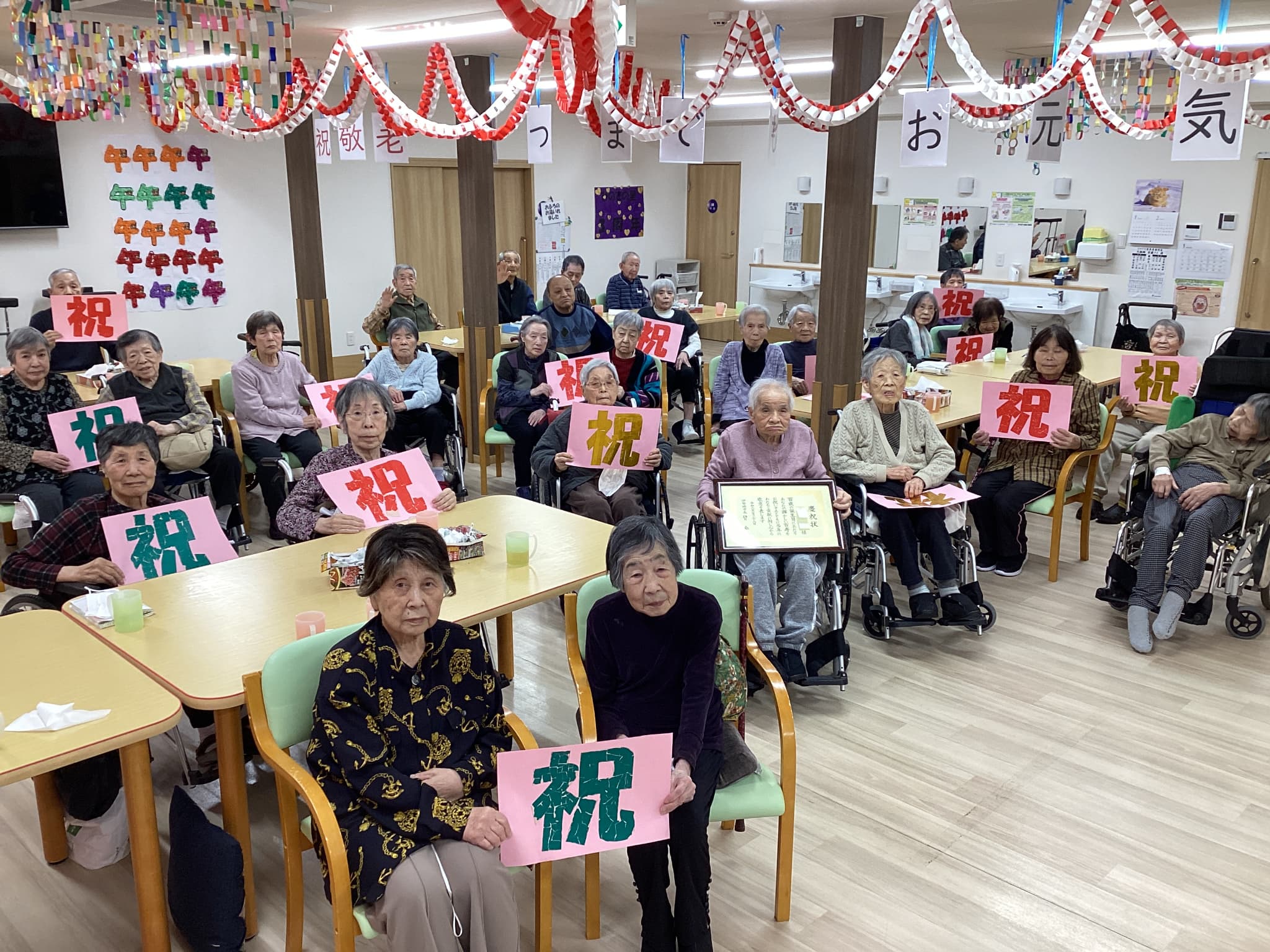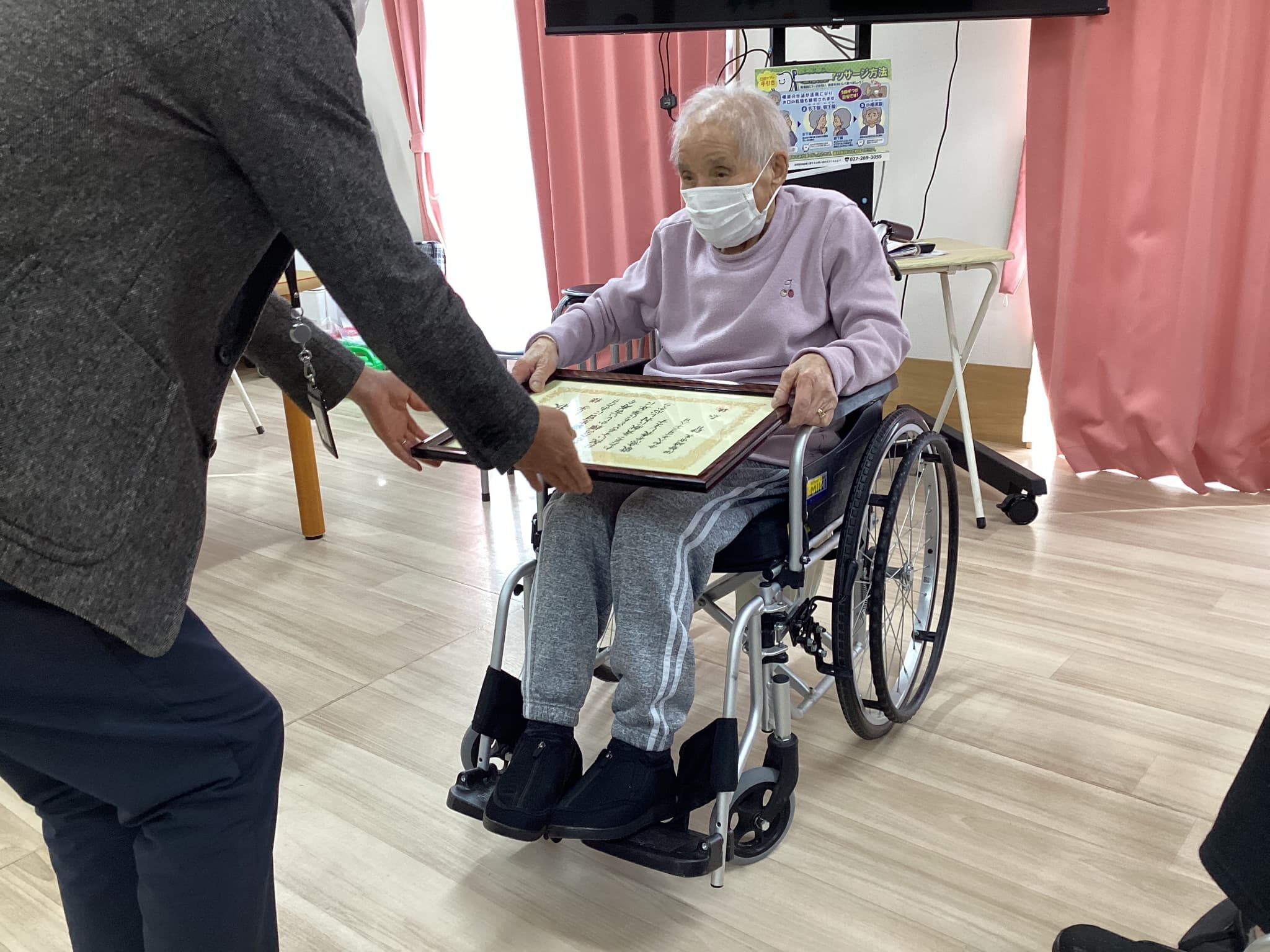 ひのでの里では、百歳を迎えた三人目の利用者様がいます。市役所の方やご家族様がきてくださり何度も『ありがとね😊ありがとね😊😊』と仰っていました。