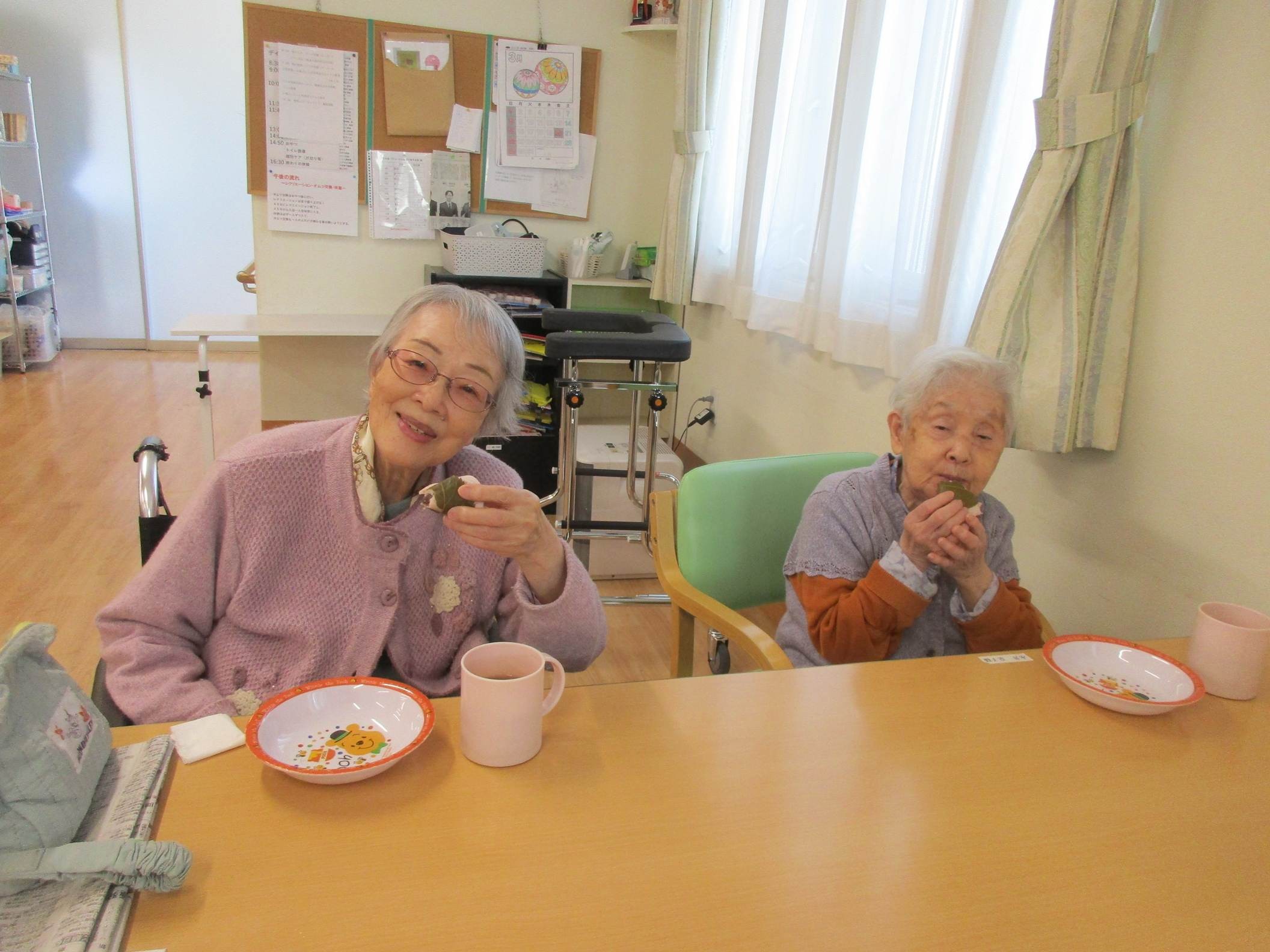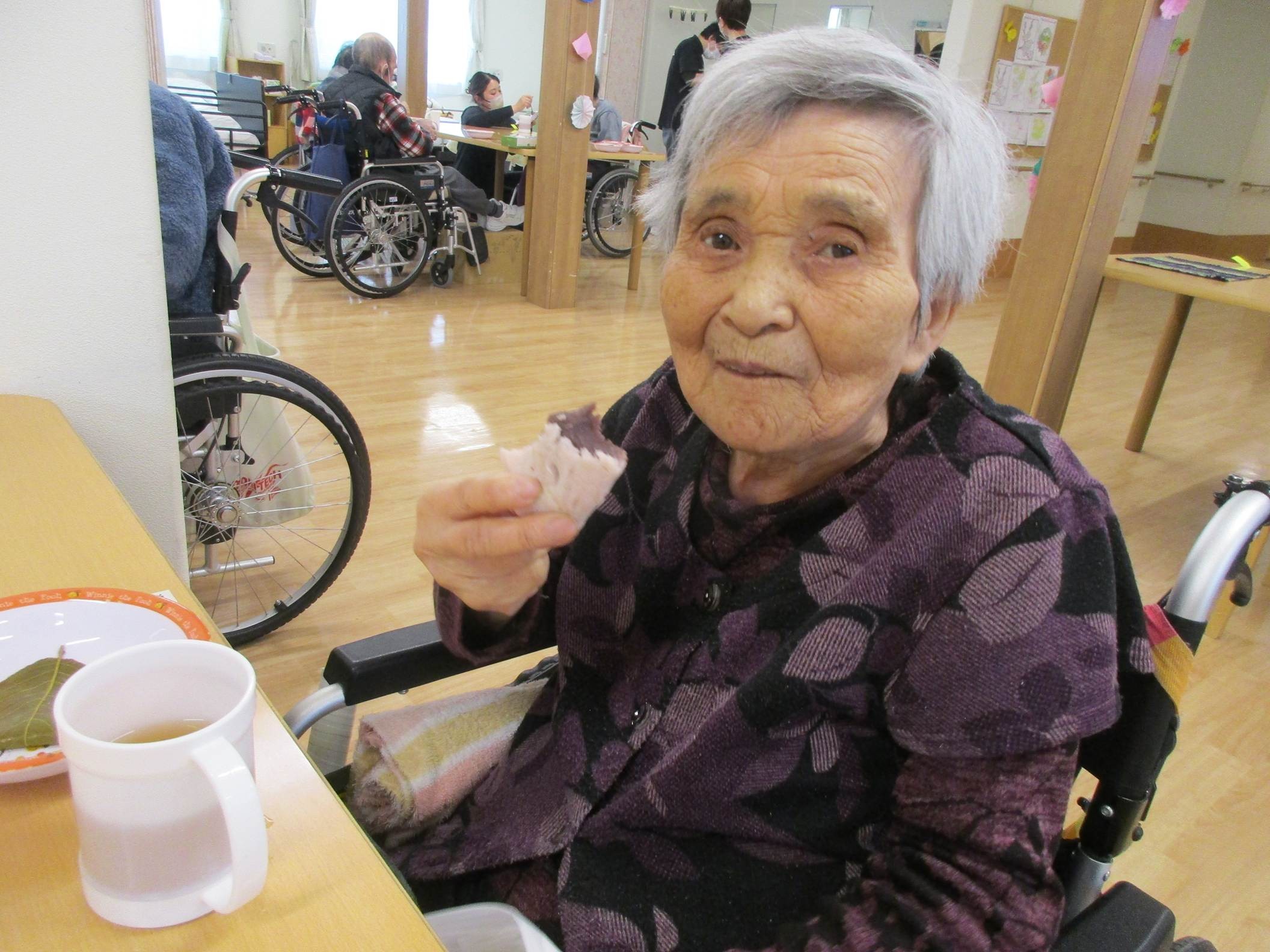 利用者様は桜餅を召し上がるのは久しぶりとの事でとても美味しいと笑顔が見られました。