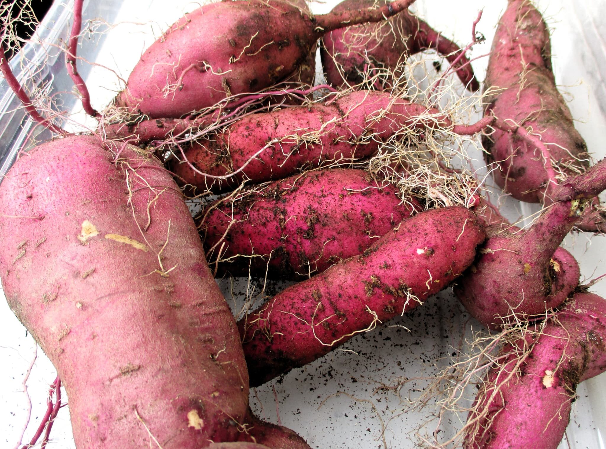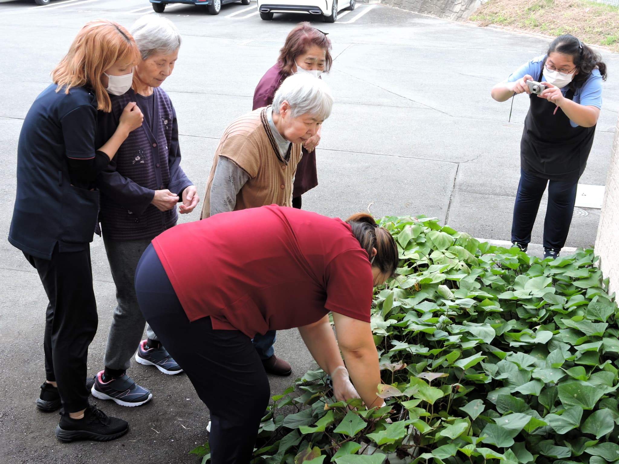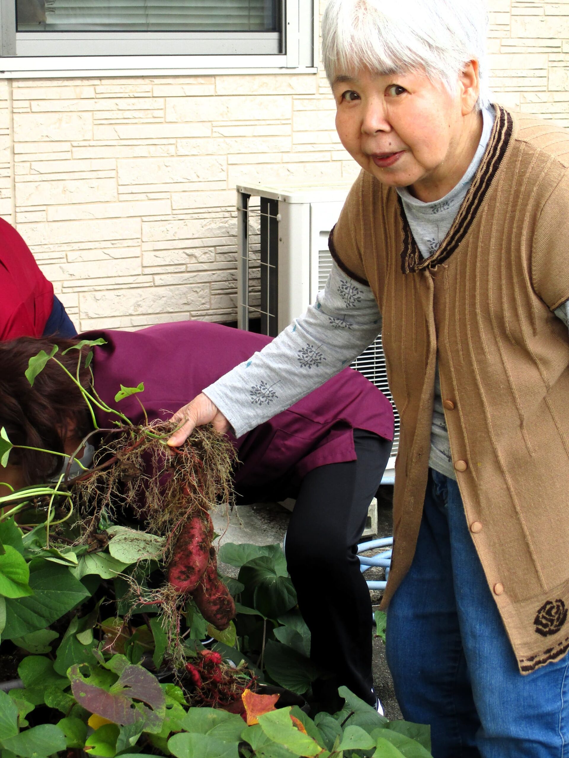 玄関わきのプランターで育てていたサツマイモを収穫しました。
