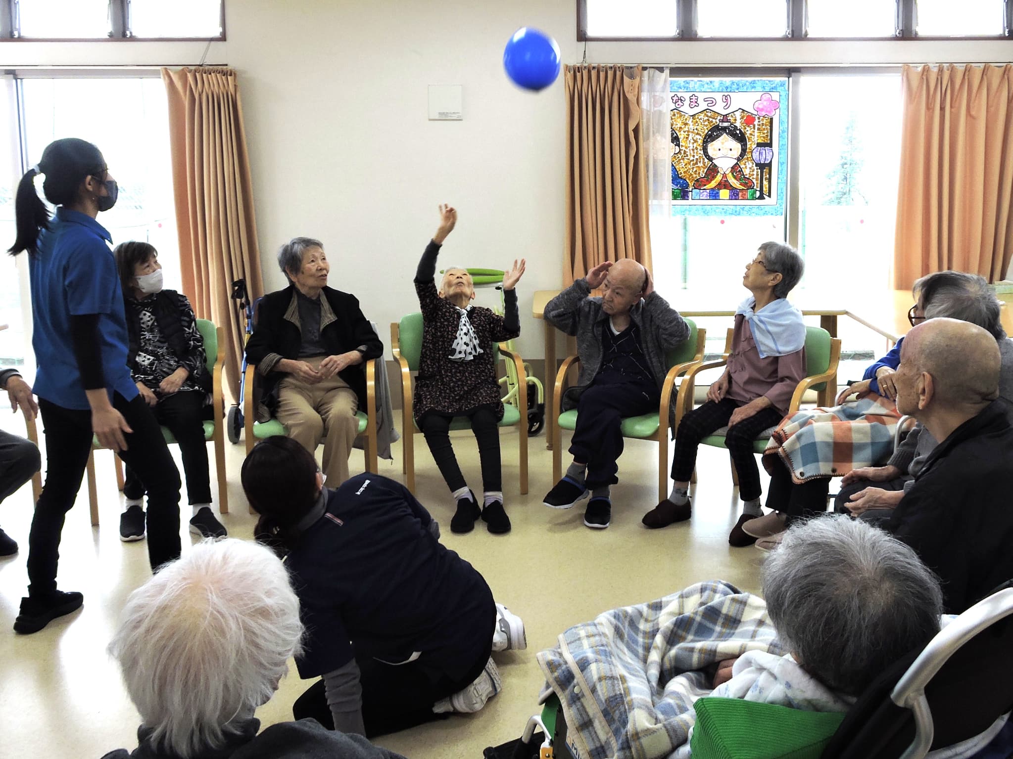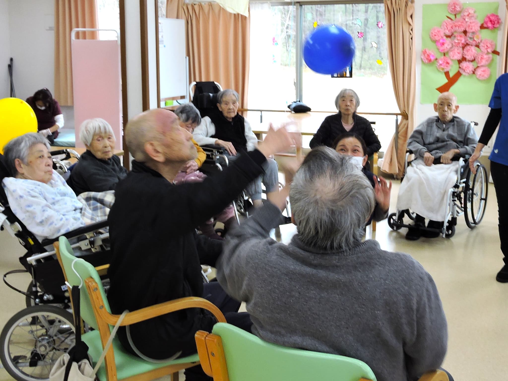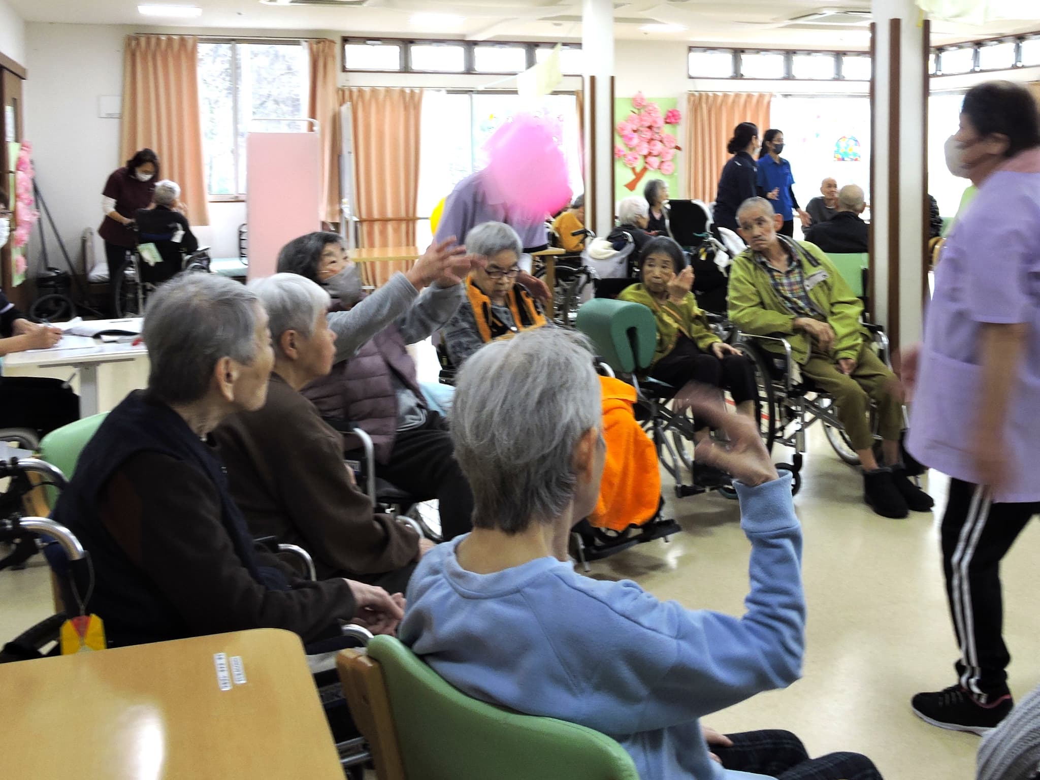 今日のレクリエーションは、皆様おなじみの「風船バレー」を行いました。