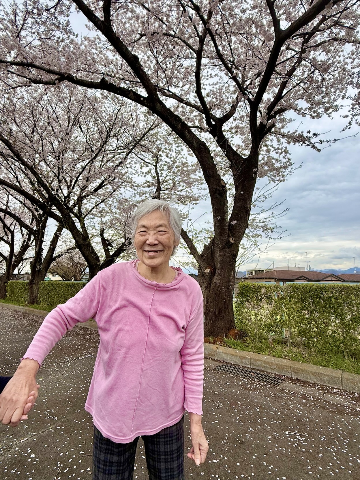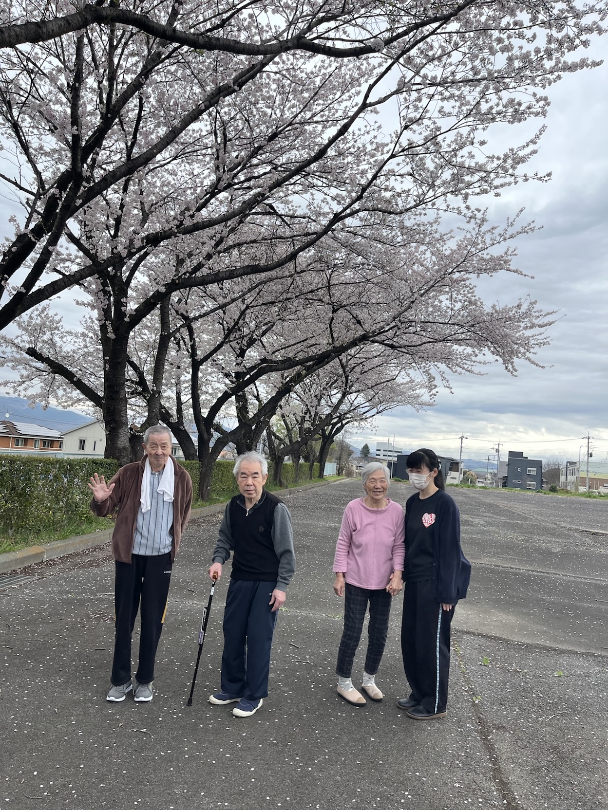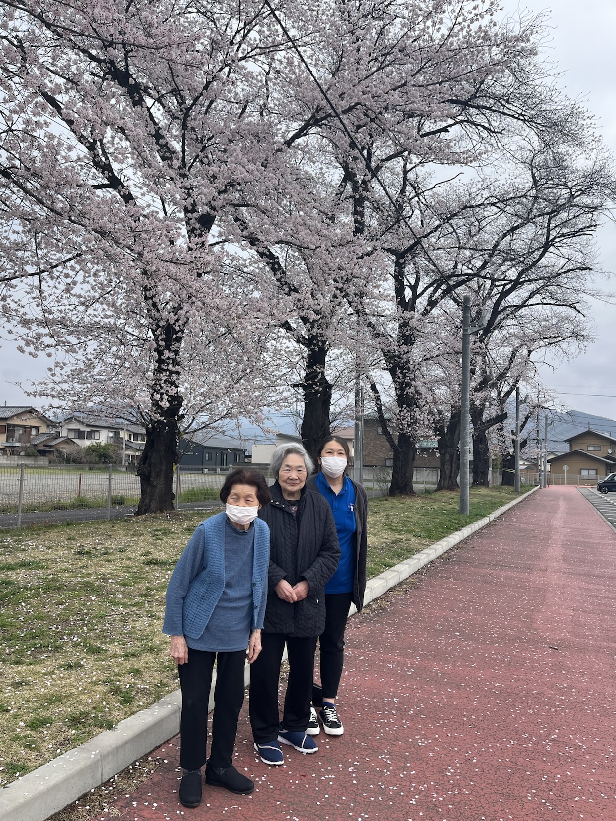 あいにくのお天気でしたが、桜が散る前に利用者様とお花見に行ってきました。