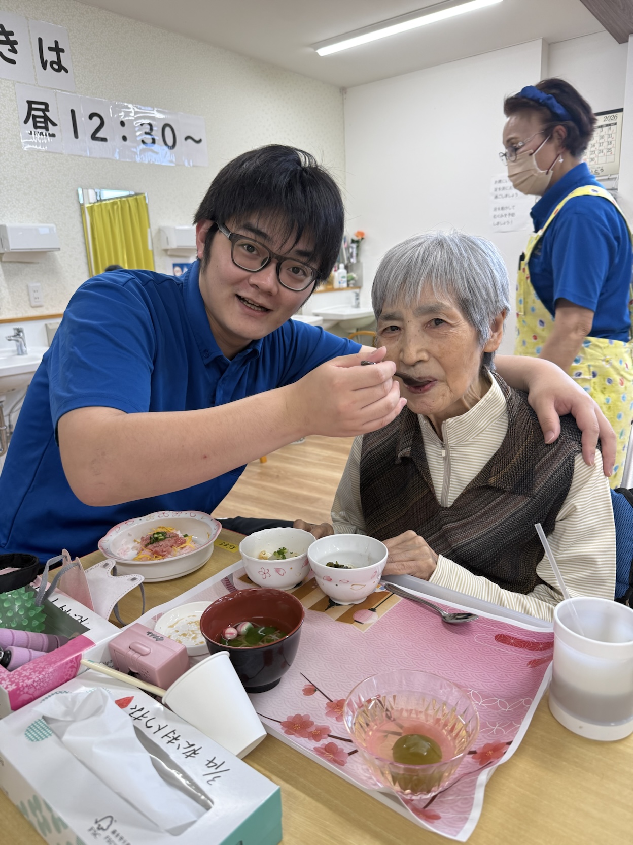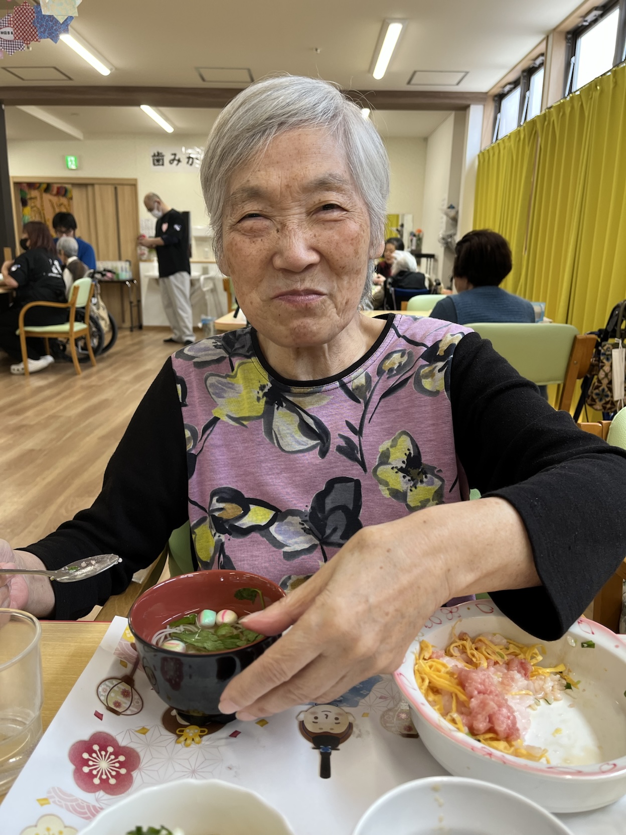 前日から楽しみにされていた利用者様も多くいらっしゃり、食事の時間になると「うれしいね」「美味しい」といった言葉があちらこちらで聞かれ、和やかな雰囲気に包まれていました。
