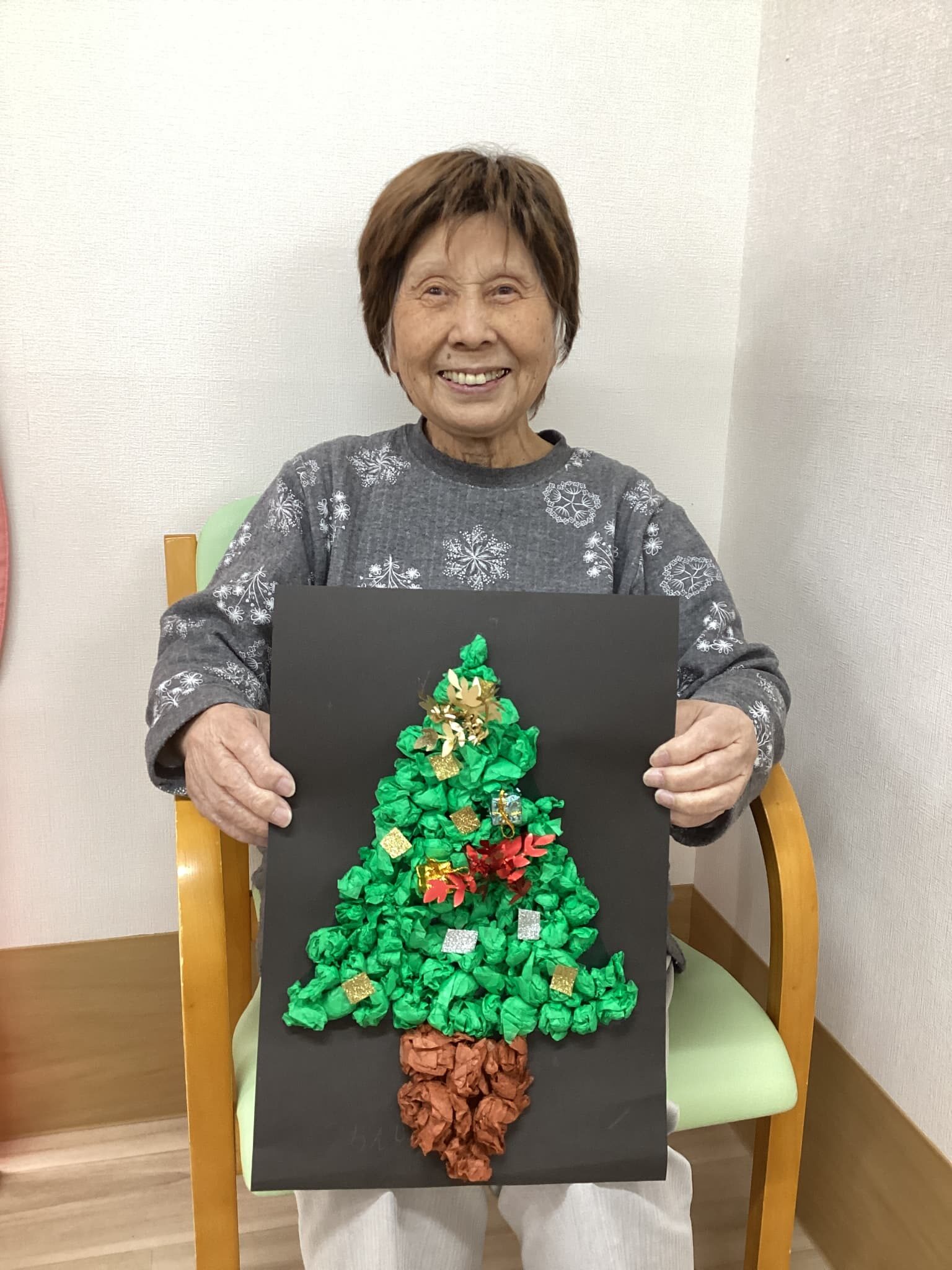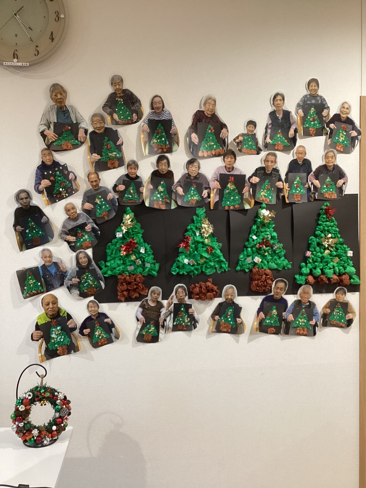 先月から制作していたツリーが完成しました。緑🟢と赤🟥でキレイに飾り付けも出来ました。