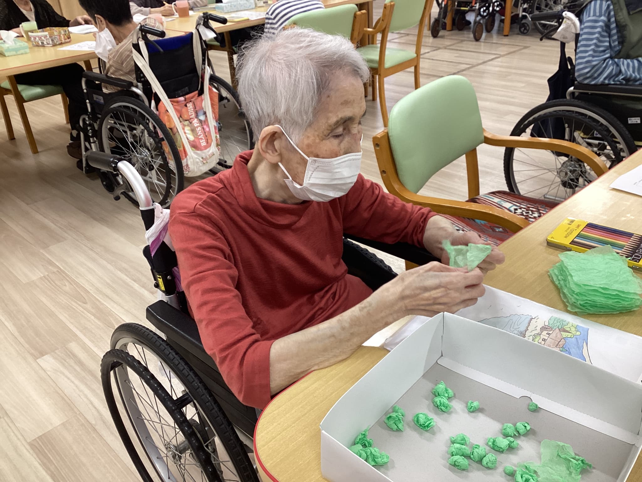 遅くなりましたが、10月の製作はブドウ🍇を作りました。色とりどりのブドウができました。「ホンモノが食べたいよね〜〜v(^_^v)♪」とのお声をたくさんいただいたので、近いうちにおやつで食べる予定です。お楽しみに(*^▽^*)