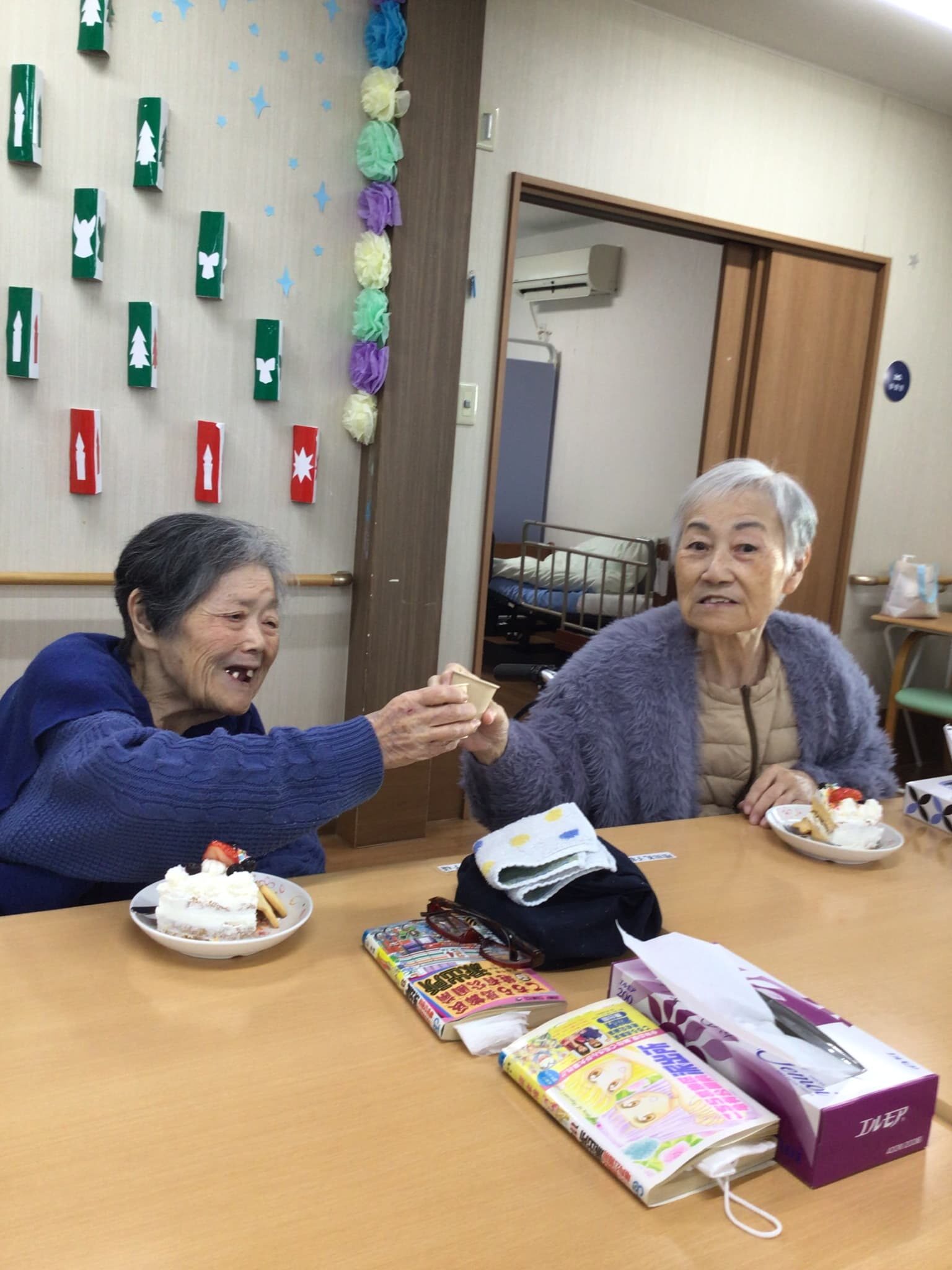 最後に職員みんなで手作りしたクリスマスケーキでほっとひとやすみ🍰