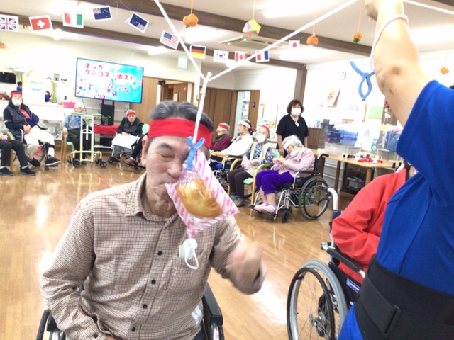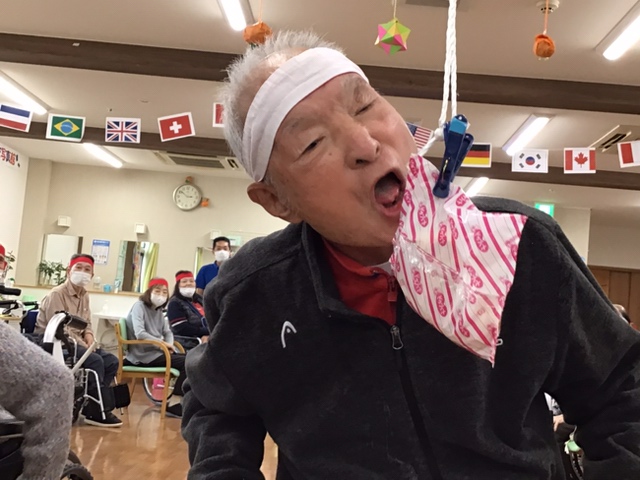 続いては「よーい,スタート!」の合図でパクっ!と一生懸命チャレンジのパン食い競争!🥐