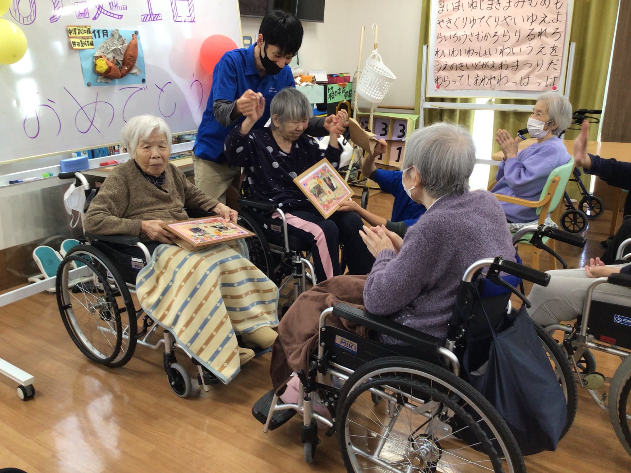 よくお話しをされる利用者様から、誕生日プレゼントを渡して頂き皆さん大変喜ばれていました。