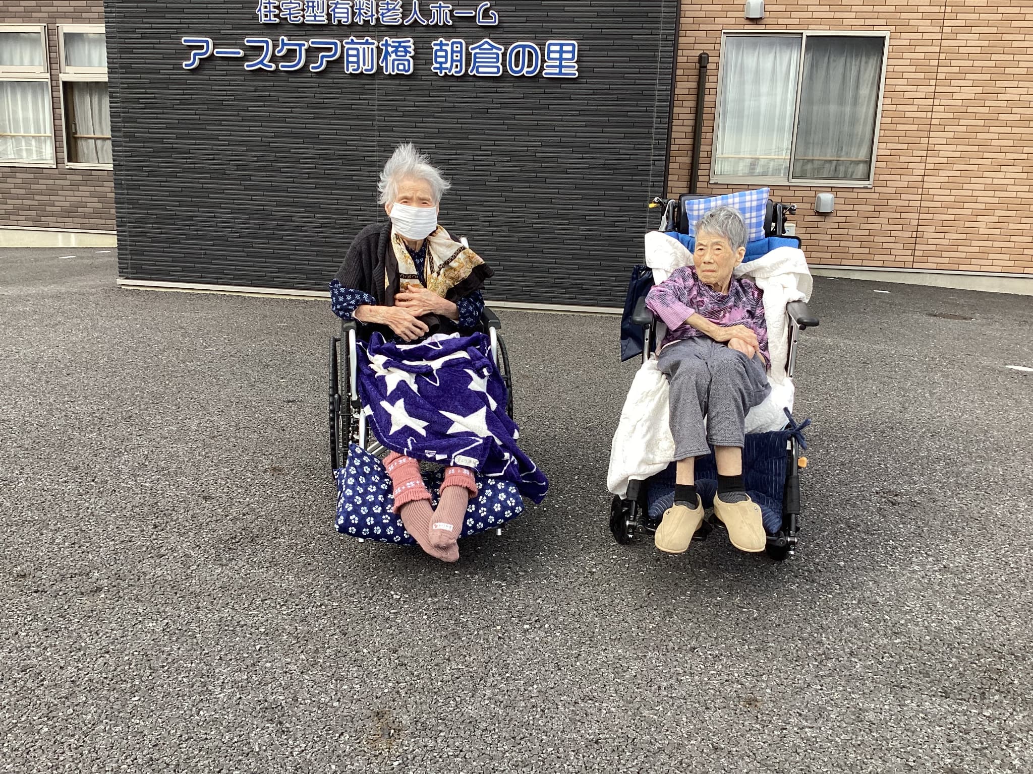 外気浴☀秋晴れ☀空気が澄んでいてとっても気持ちの良い☀お天気だったので施設敷地内でご利用者様方と歌やおしゃべりレクを行いました!(^^)!皆さんとても生き生きされリフレッシュしました(^^♪🎵