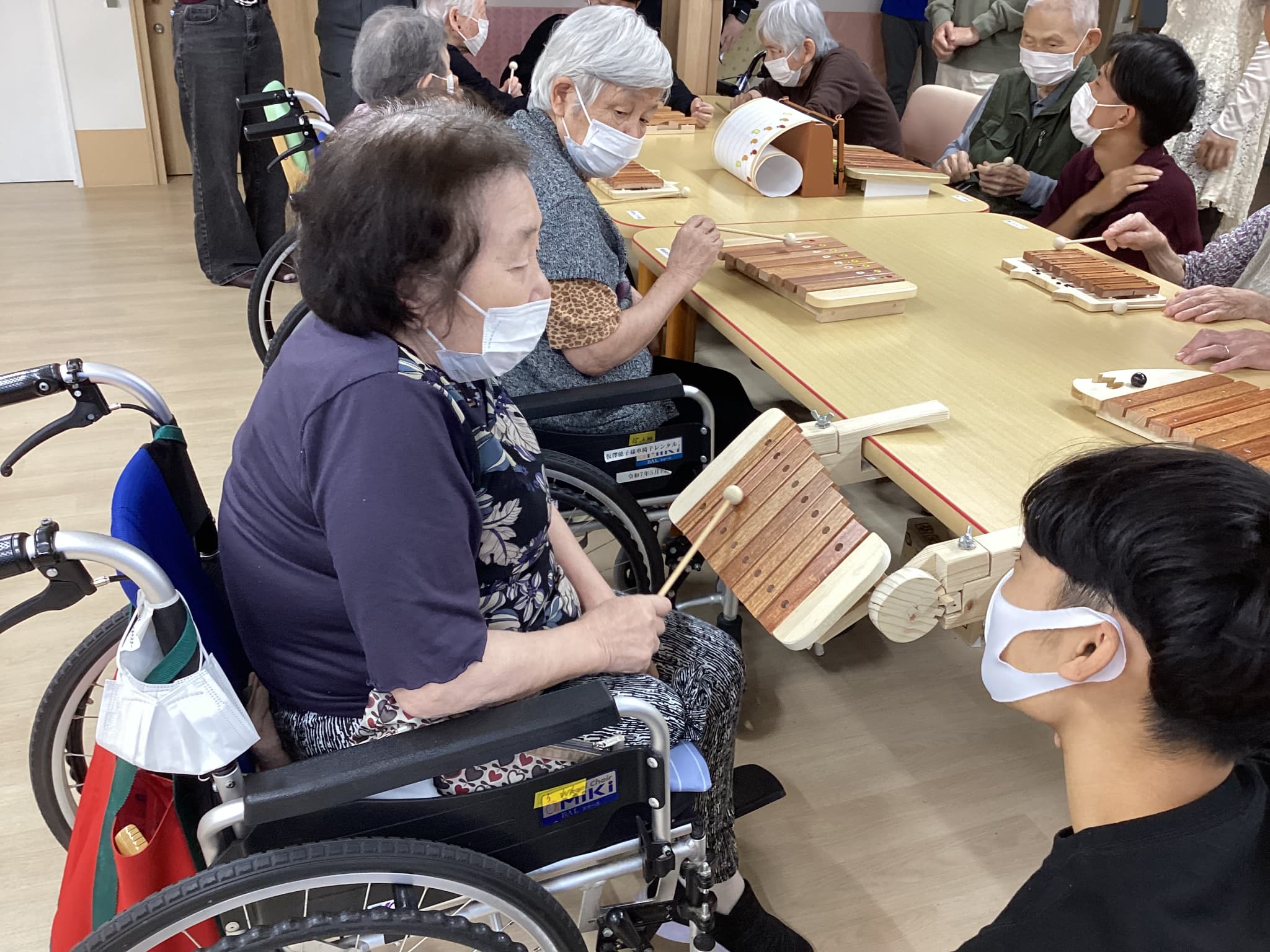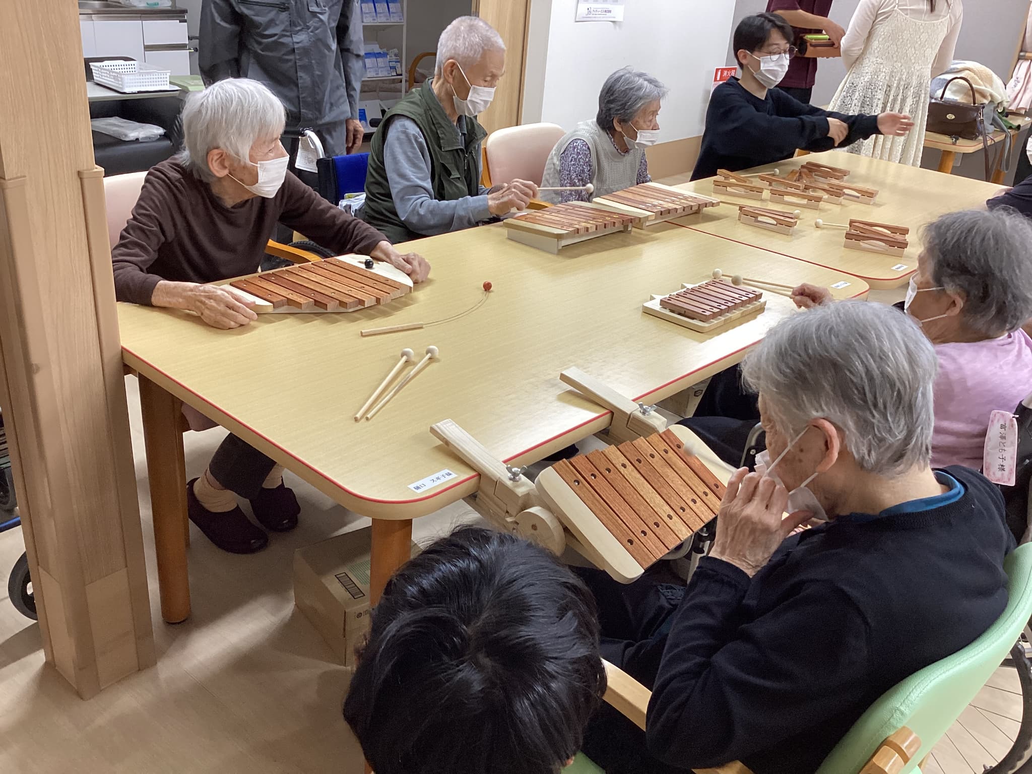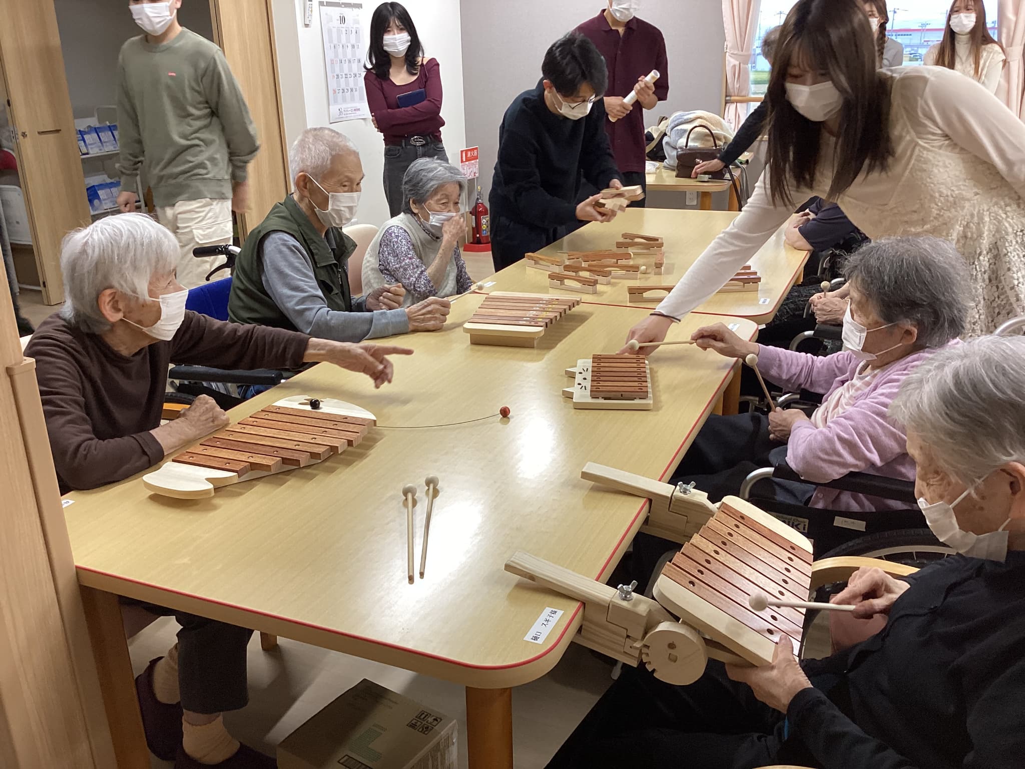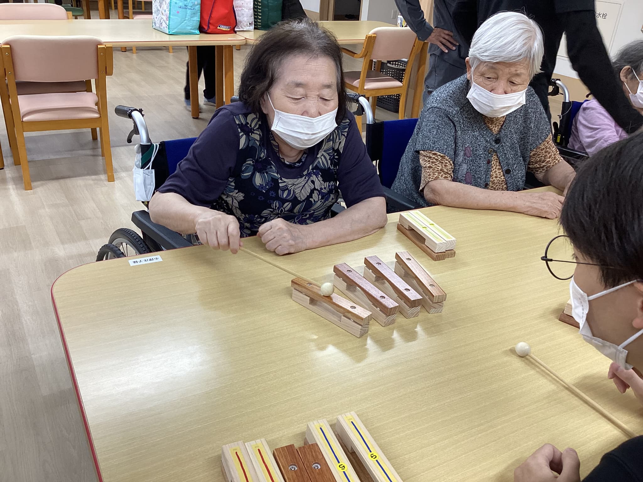 前橋工科大の生徒さんによる木琴の試作品を持ってきて頂きご利用者様方と一緒にお話ししながら色々な音色を出し合い楽しみました(^^♪