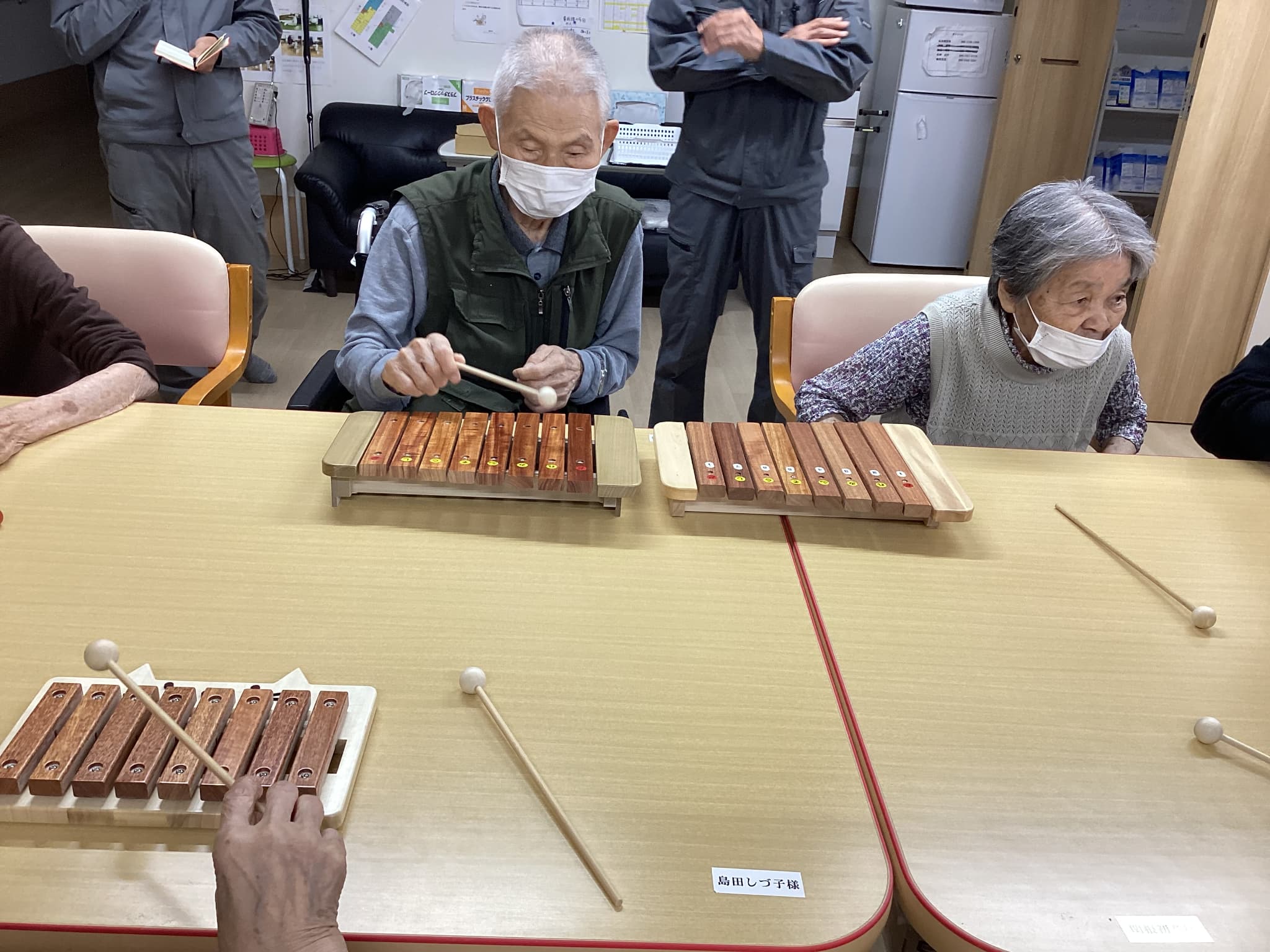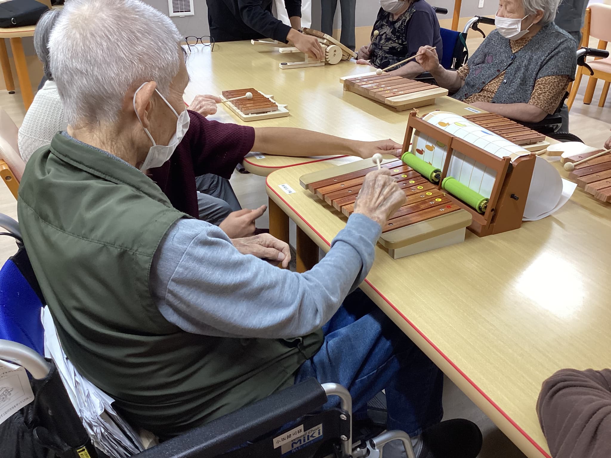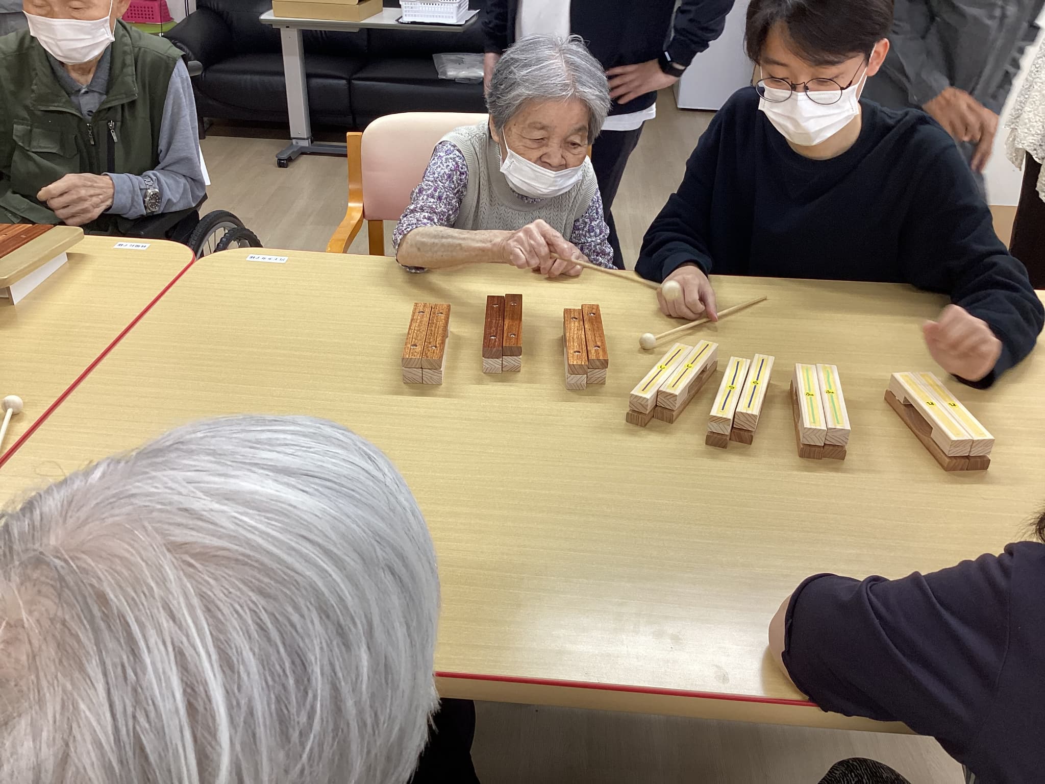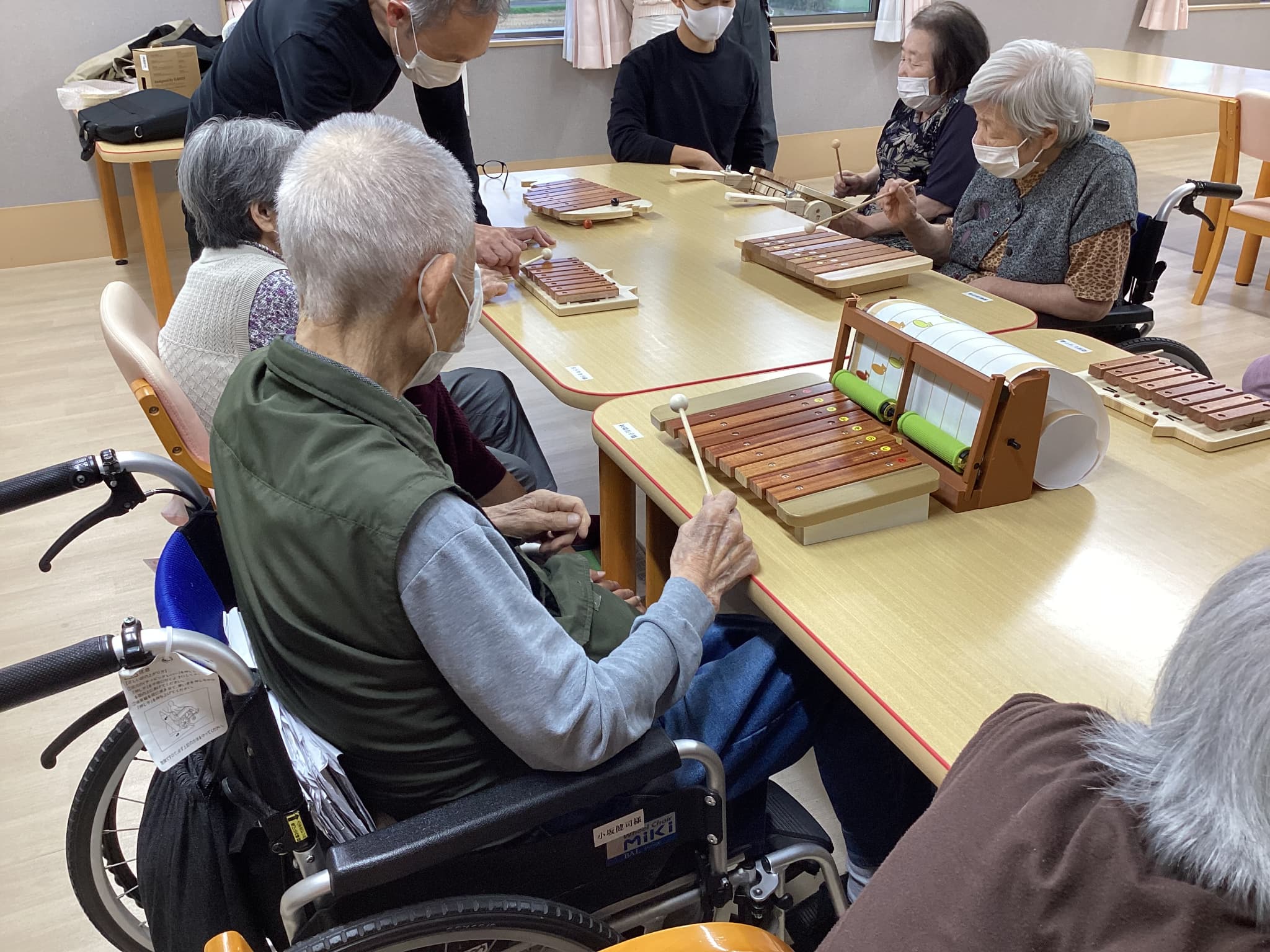 前橋工科大の生徒さんによる木琴の試作品を持ってきて頂きご利用者様方と一緒にお話ししながら色々な音色を出し合い楽しみました(^^♪
