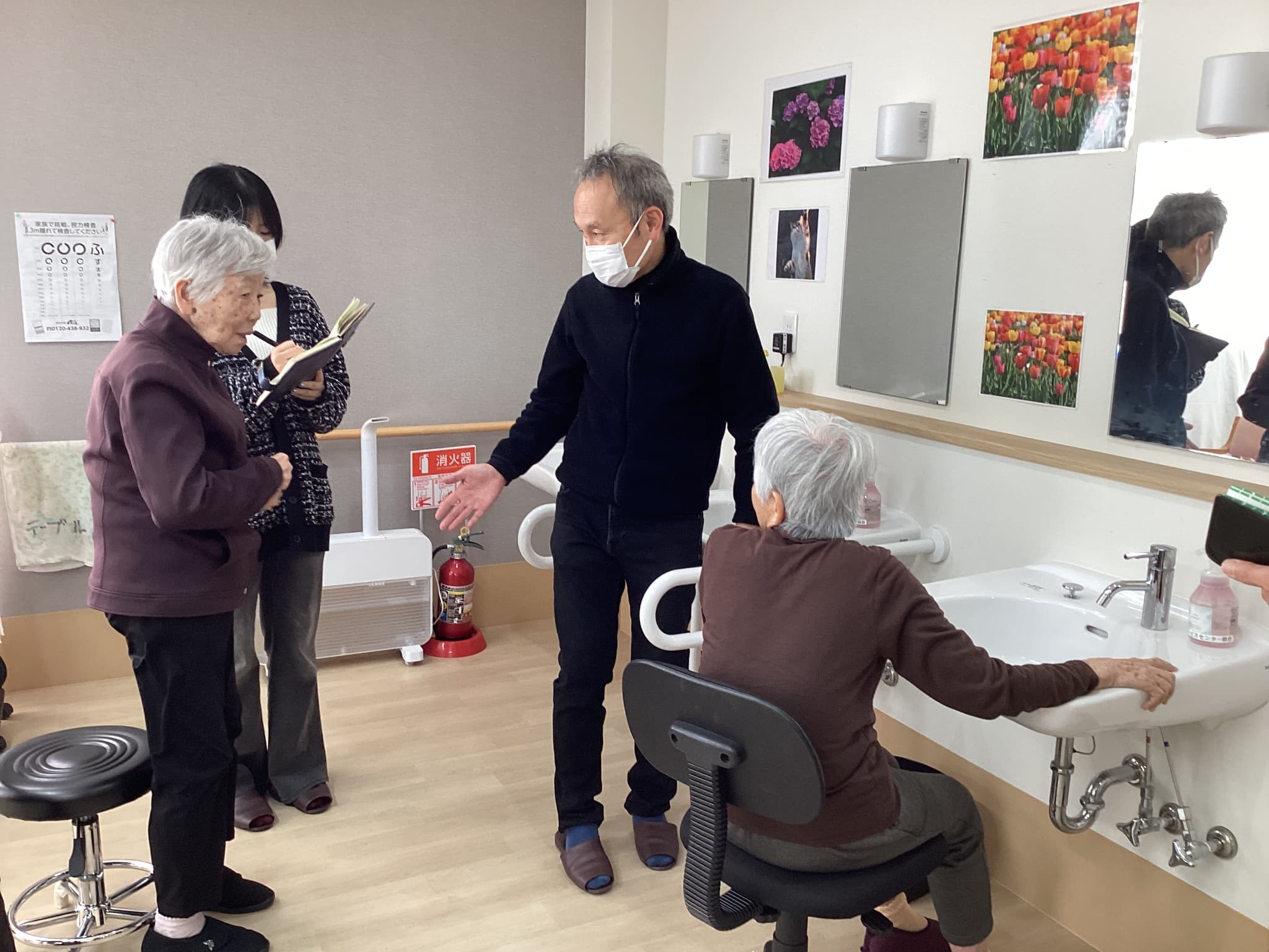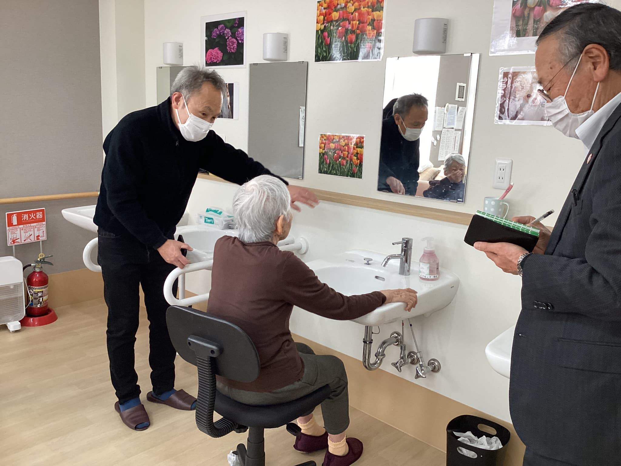 前橋工科大教授及び生徒の皆さんや業者の方々が来所され、ご利用者様にとってどのような洗面台が合うのか高さや幅等熱心し確認され又ご利用者様からも質問やアドバイスをされておりました(#^^#)