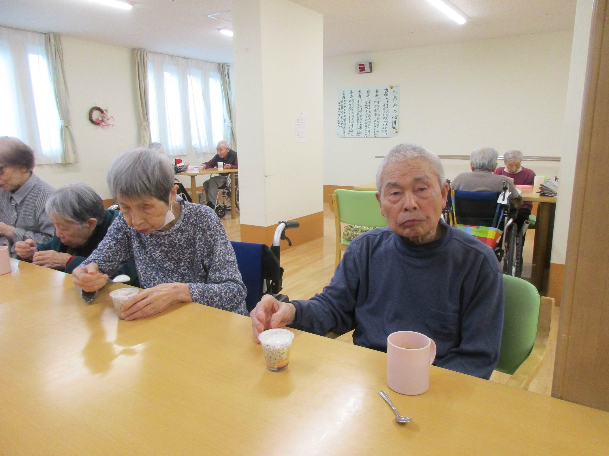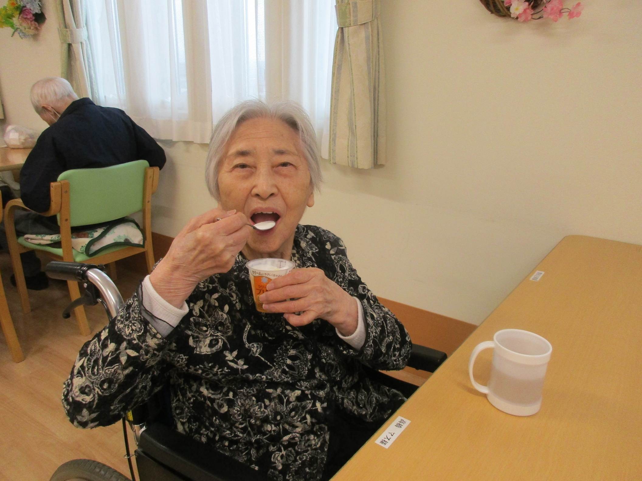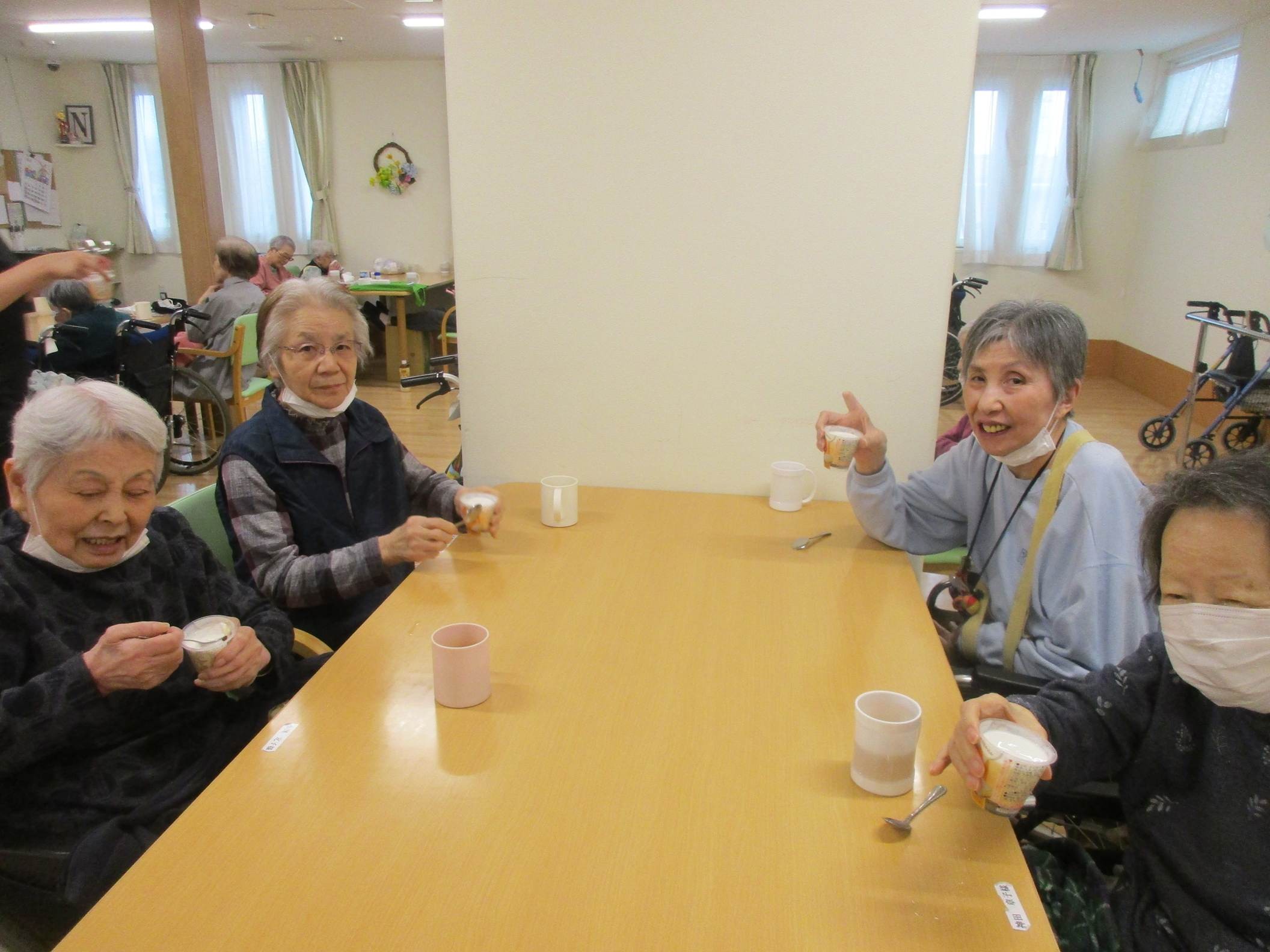 今回のおやつレクリエーションは普段のプリンとは違ったちょっと豪華なプリンを提供しました。皆さん「このプリン毎日食べたい♡」と話されておりました。