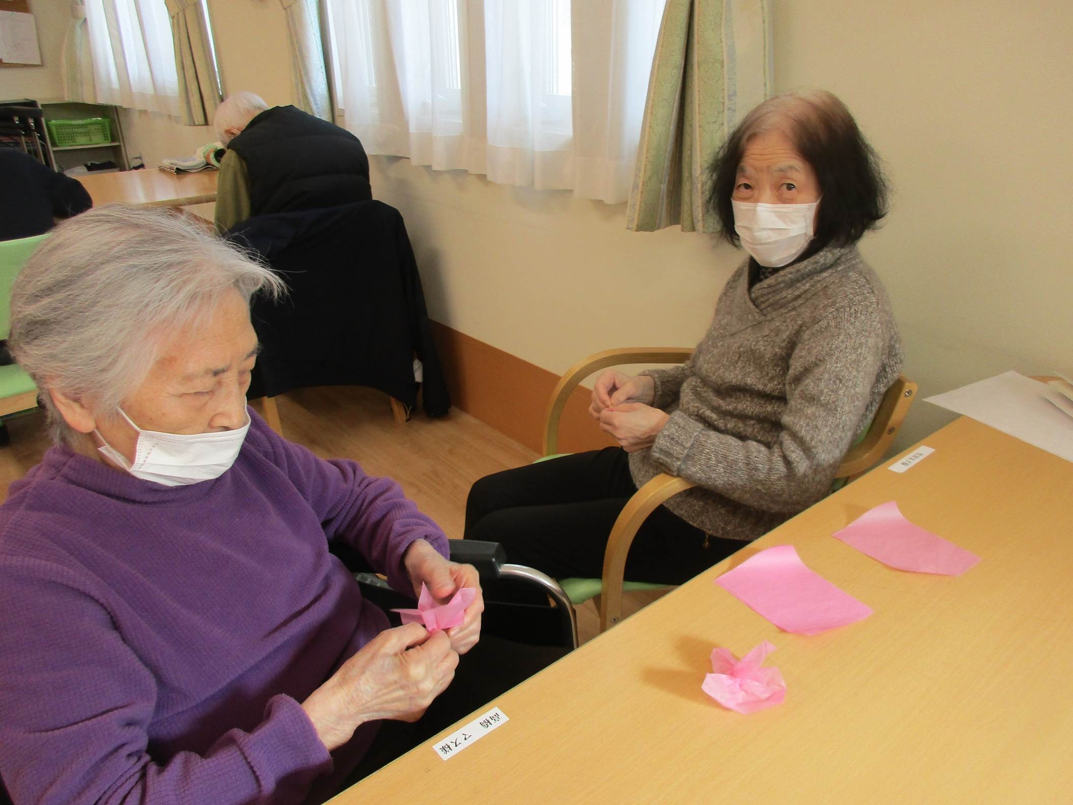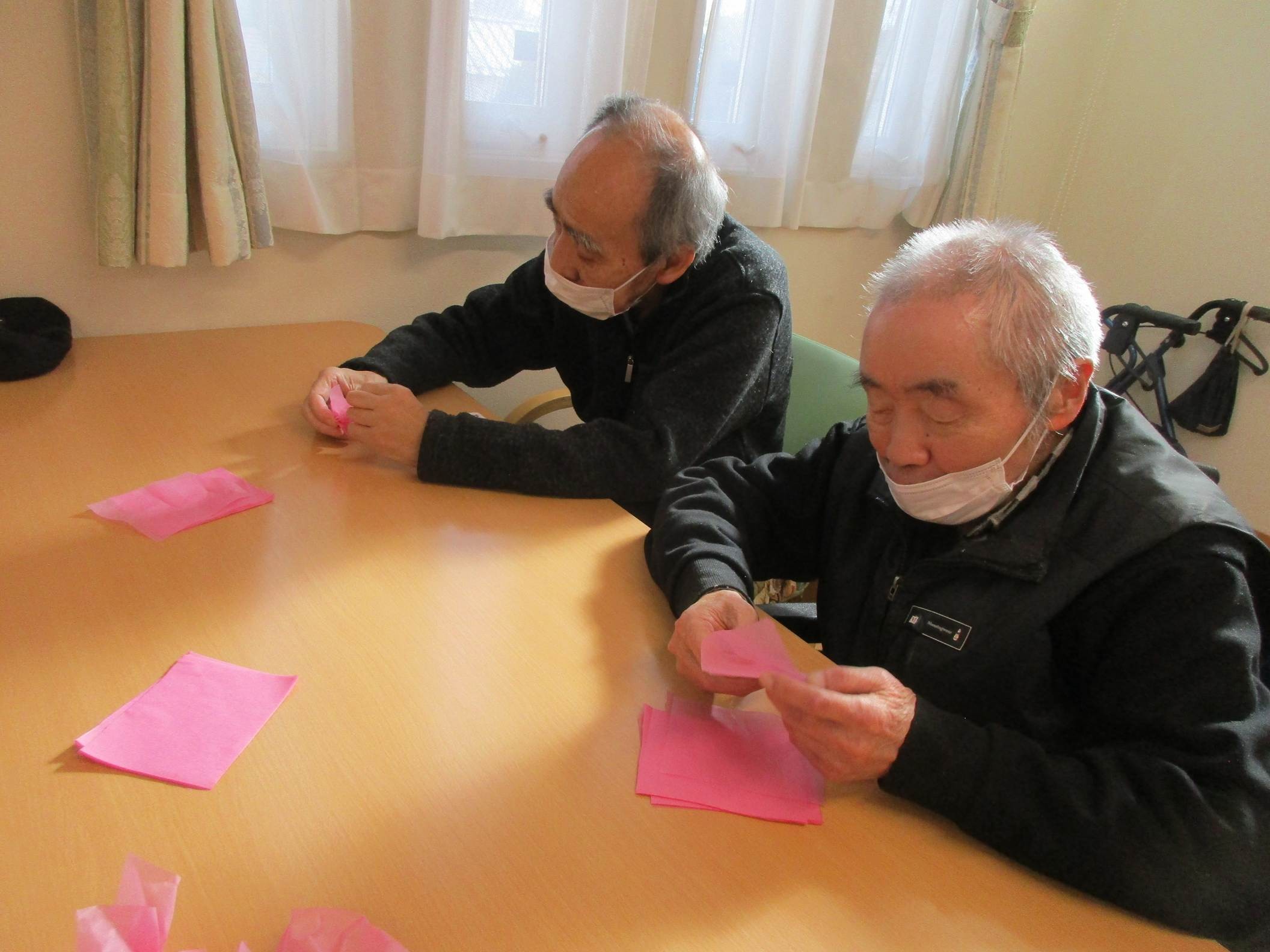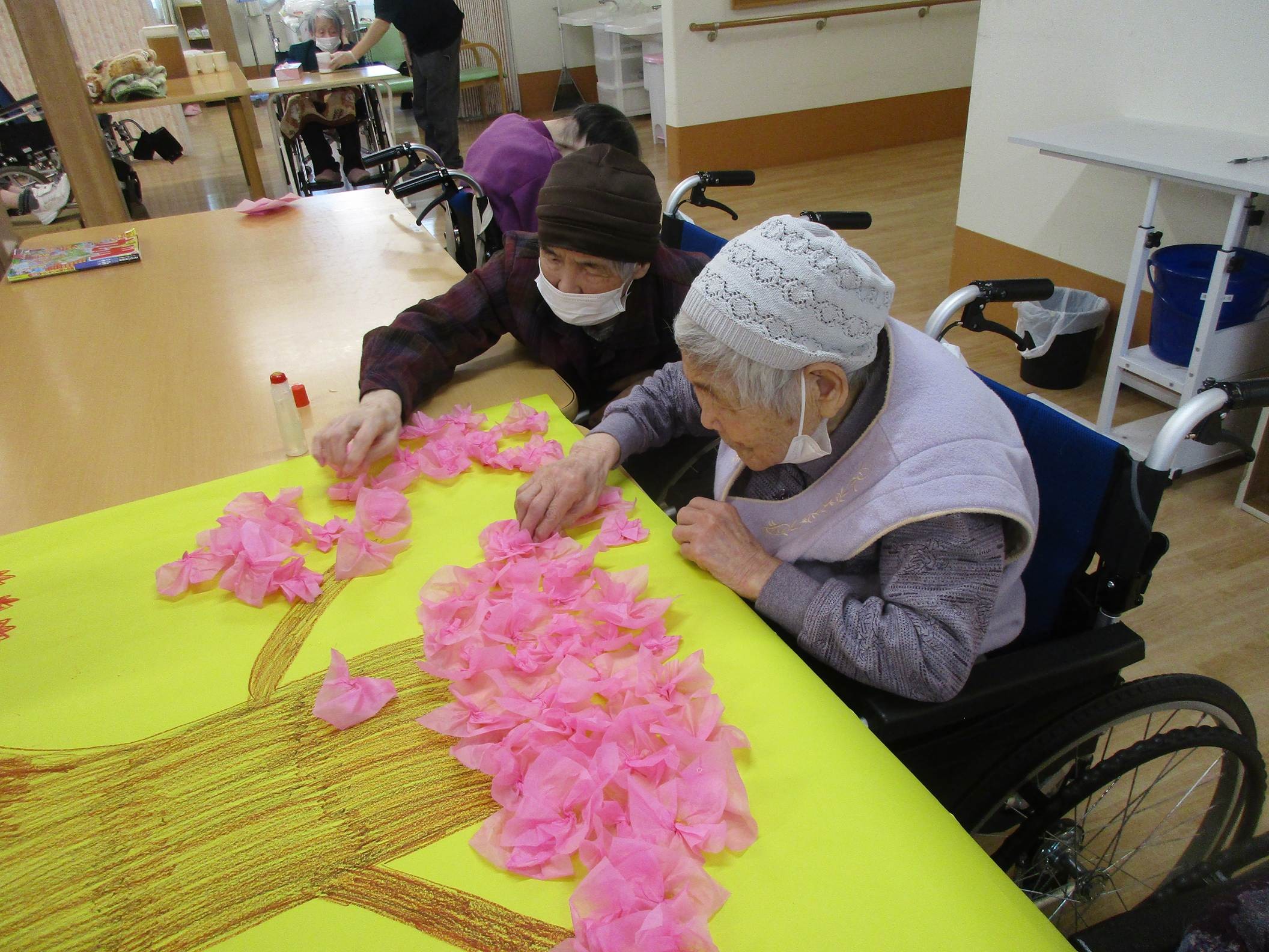 今はまだ寒いですがだんだん春に近づいてきました。デイサービスでも桜の壁画を制作し、華やかになりました!