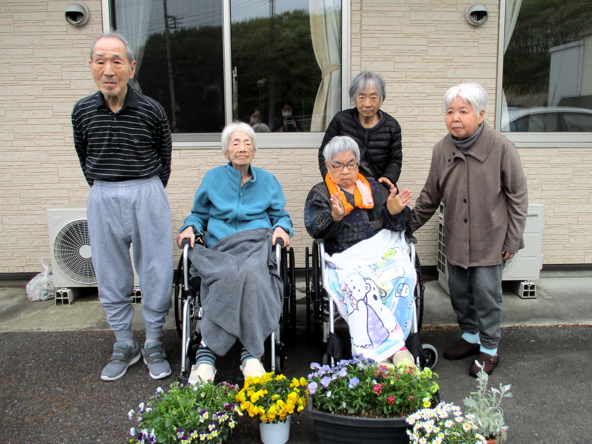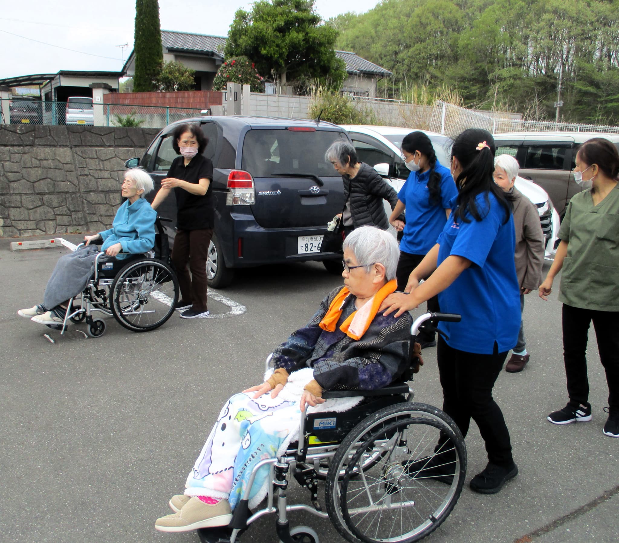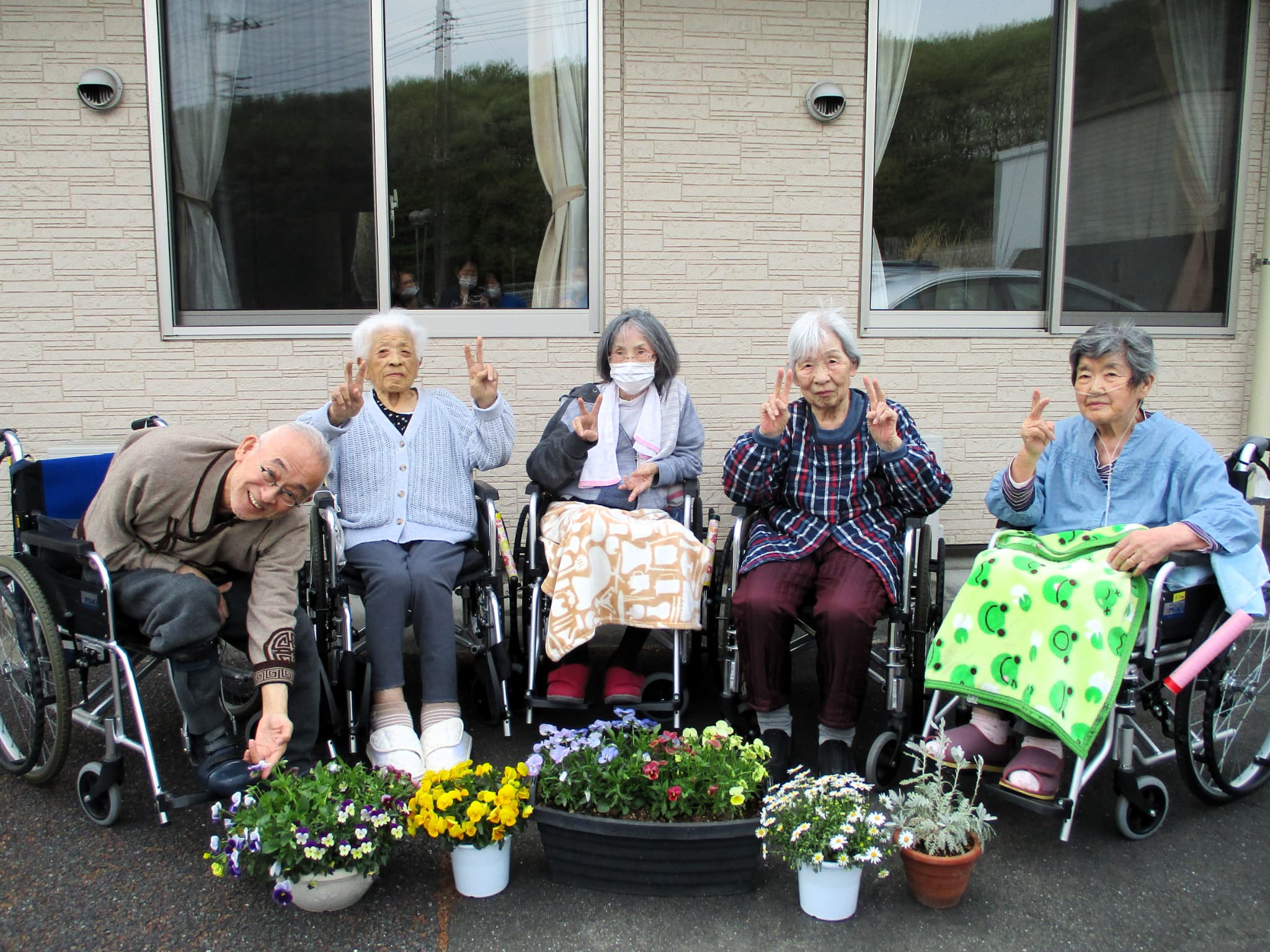 今日は曇り空。気温は約23℃と暖かかったのですが、入居者様から「やっぱりお日様の下で見たいわ」とのリクエストがあり、公園散策は延期にしました。
