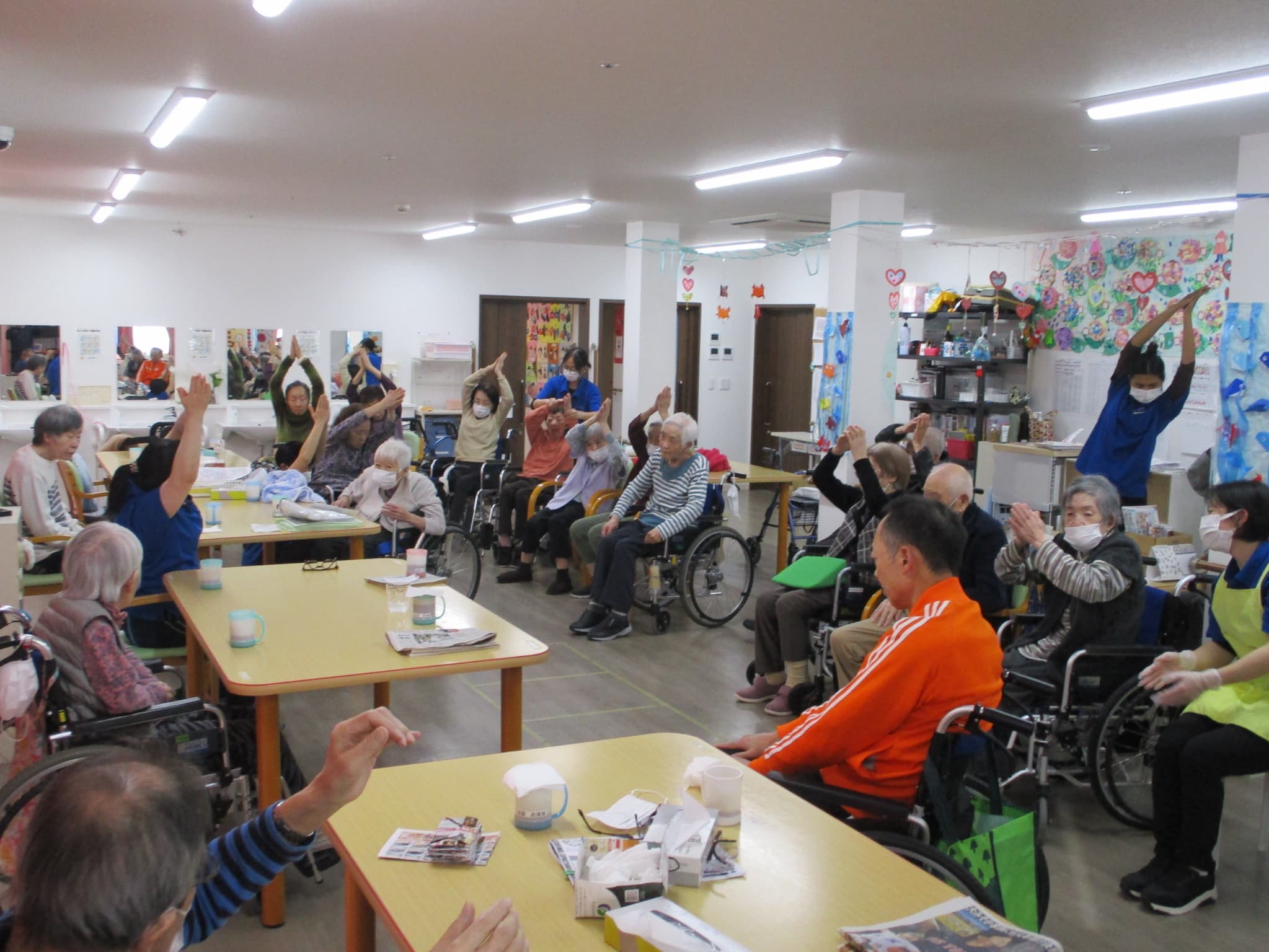 職員の声かけに合わせて