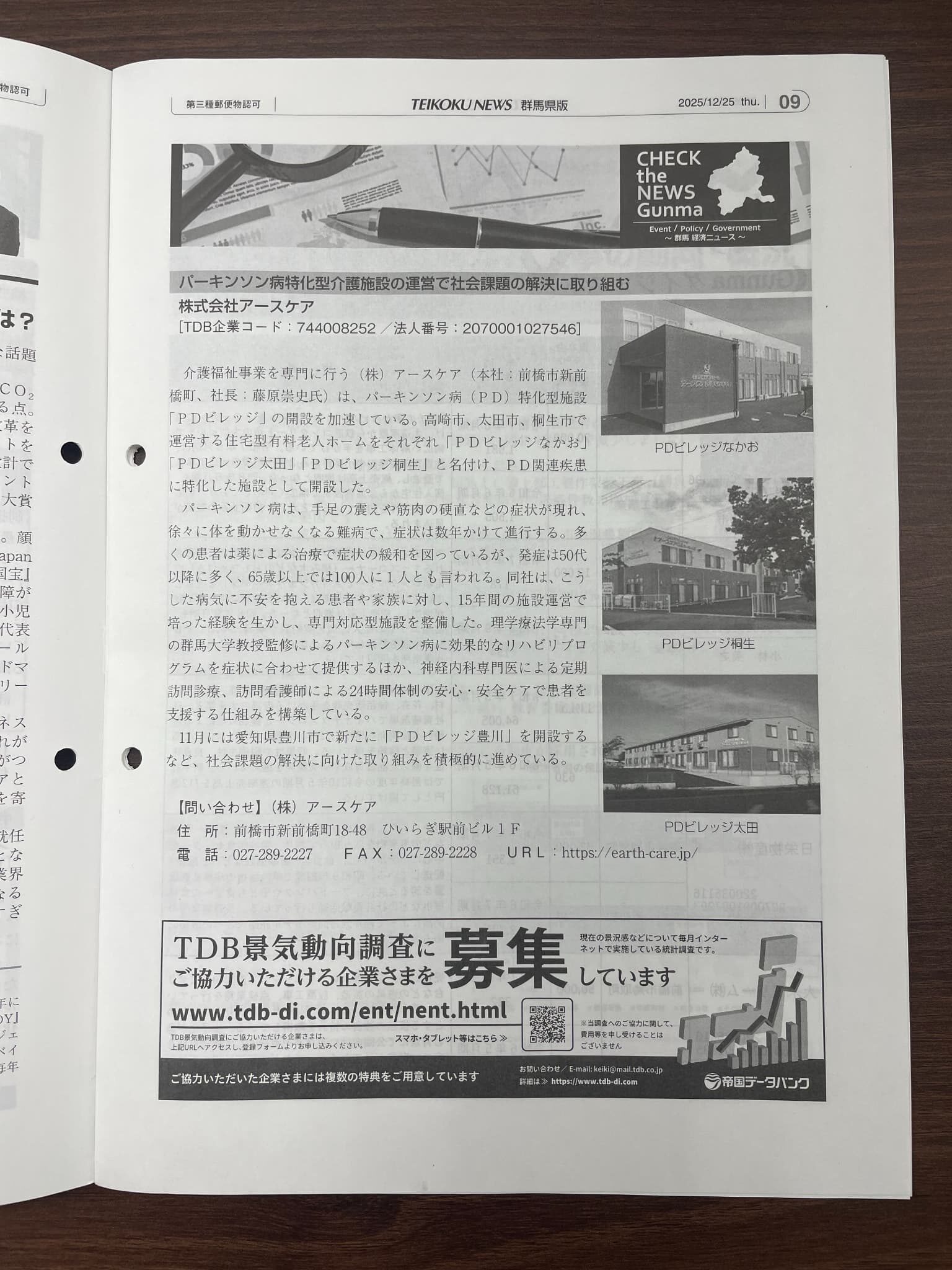 株式会社帝国データバンク様が発行する「TDB TEIKOKU NEWS」群馬県版にて、PDビレッジの記事が掲載されました。